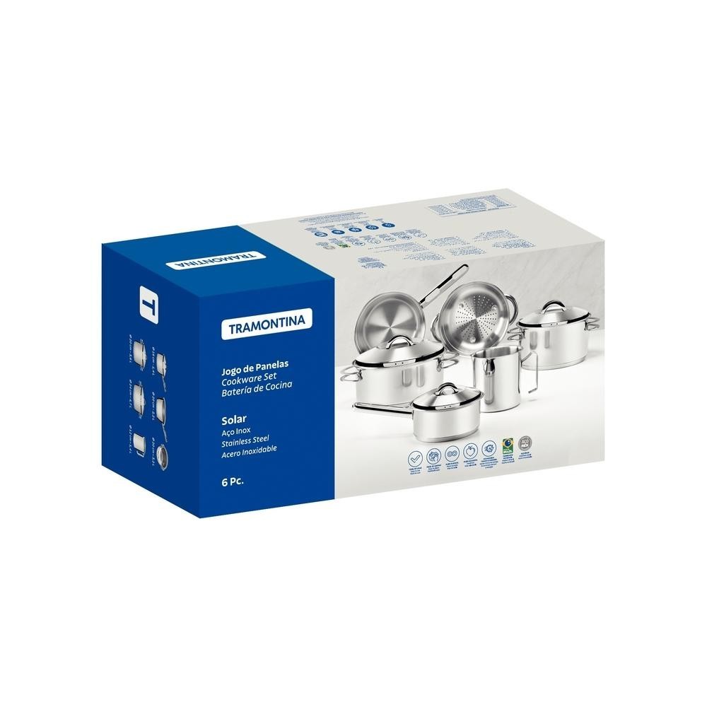 Jogo Panelas Tramontina Solar Inox 6 Peças Fundo Triplo