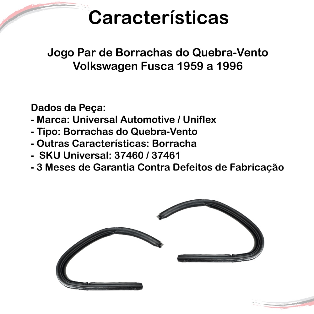 Jogo Par de Borrachas do Quebra-Vento Volkswagen: - Fusca 1959 a 1996 SKU Universal Automotive: 37460 / 37461