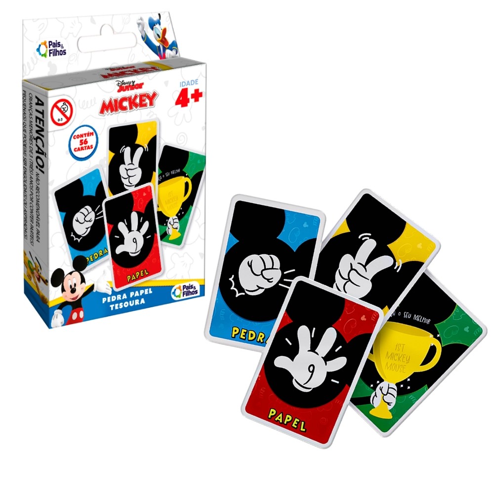 JOGO PEDRA PAPEL TESOURA MICKEY MOUSE DISNEY PAIS E FILHOS 56 CARTAS JANKENPÔ BRINQUEDO CRIANÇA UNO