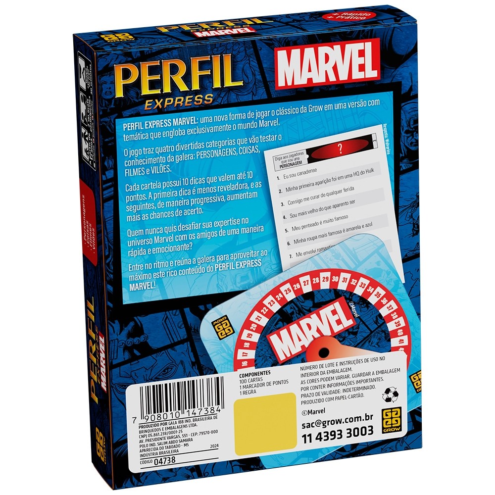 JOGO PERFIL EXPRESS MARVEL 100 CARTAS GROW PERSONAGEM FILME VILÕES RACIOCÍNIO SUPER HERÓIS PERGUNTAS