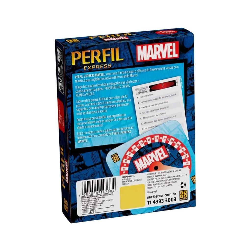 | Jogo Perfil Express Marvel Grow - 04738 este produto | R$ 55,13 | 6% | 5.0/5 | — |
