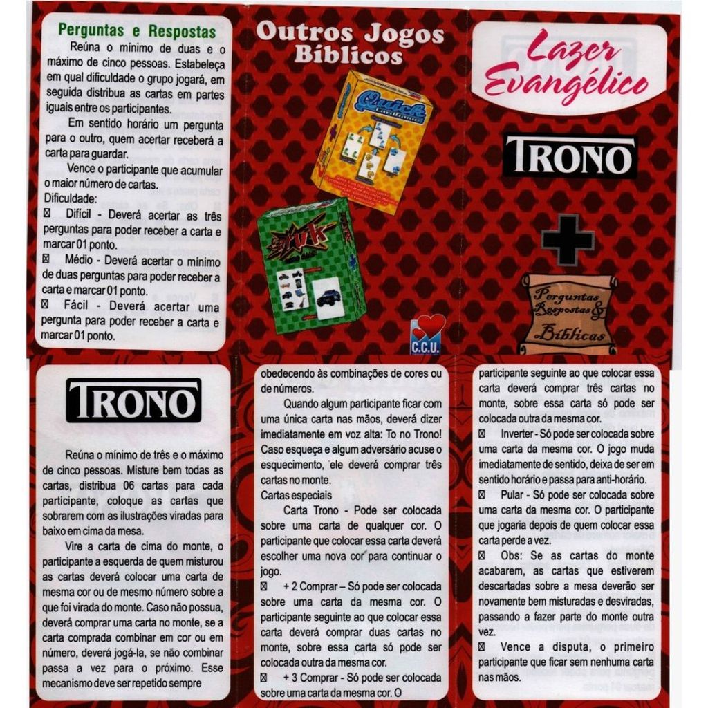 Jogo de carta 2 em 1, ideal para: * acampamentos; * EBD; * dinâmicas em grupo; * quebra-gelo em células...