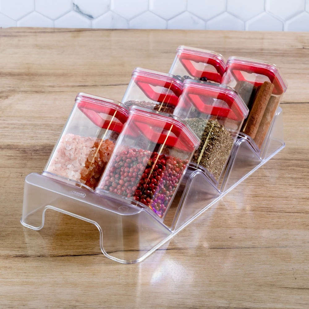 Jogo Porta Condimentos Organizador De Temperos Acrílico Tampa Hermética Conjunto Empilhável