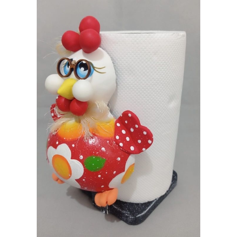Jogo porta papel toalha e casal galinha vermelho decorativo e artesanal