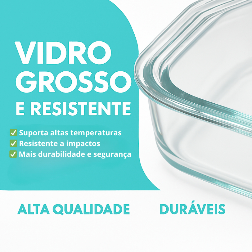 Kit 3 Potes de Vidro Herméticos – 1040ml, 640ml e 370ml Chega de plástico manchado, trincado e com cheiro! Se você ainda guarda seus alimentos em potes de plástico, é hora de repensar. O uso contínuo desse material — especialmente ao aquecê-lo — pode liberar toxinas nocivas à saúde, como o BPA, além de reter odores e manchas que não saem nem com reza forte. A solução? Nosso Kit com 3 Potes de Vidro Hermético, pensados para quem exige segurança, resistência, beleza e praticidade no dia a dia. Com tampas herméticas e vedação em silicone removível, esses potes mantêm seus alimentos frescos por mais tempo, sem risco de vazamento e sem deixar cheiro na geladeira. Diferenciais que fazem a diferença Vedação super hermética com anel de silicone removível 4 travas laterais que selam o pote com segurança Sem vazamentos ou odores espalhados Vai ao micro-ondas, forno (sem a tampa), freezer e lava-louças Material livre de BPA – não tóxico e seguro para sua família Fácil de limpar e não mancha com alimentos pigmentados Design elegante que permite ir da geladeira direto à mesa Versátil e multifuncional Ideal para: Levar marmitas com segurança Armazenar sobras no freezer ou geladeira Servir petiscos diretamente à mesa Aquecer alimentos no micro-ondas sem riscos Presentear com bom gosto e utilidade (inclusive a sogra!) Ficha Técnica Modelo: Kit de Potes de Vidro Hermético Retangular Capacidades: 1040ml, 640ml e 370ml Material: Vidro borossilicato, tampa plástica com anel de silicone Peso total: 1,2kg Itens inclusos: 3 potes com tampas Garantia: 30 dias contra defeitos de fabricação