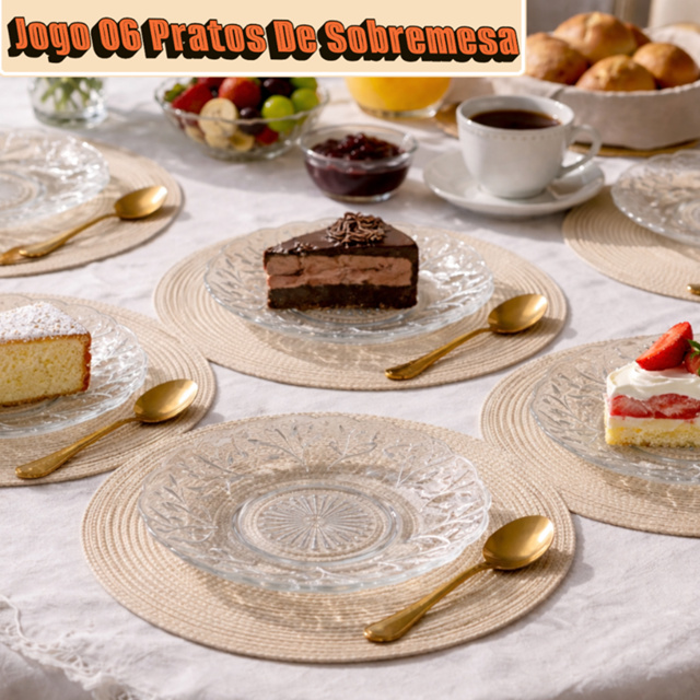 | Jogo Prato de Sobremesa 06 Unidades Detalhada em Vidro Kit Petala R... este produto | R$ 24,30 | 39% | 4.7/5 | — |