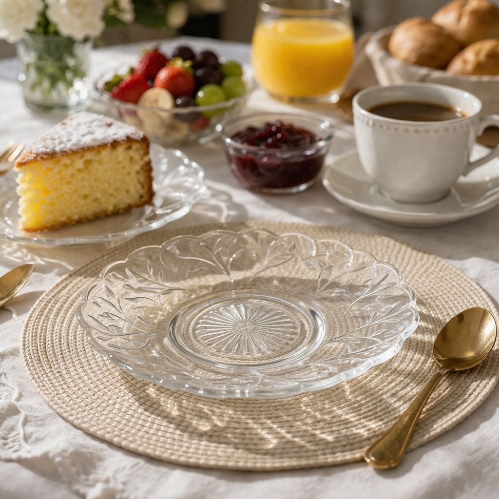 Jogo Prato de Sobremesa 06 Unidades Detalhada em Vidro Kit Petala Resistente Pratos Modernos