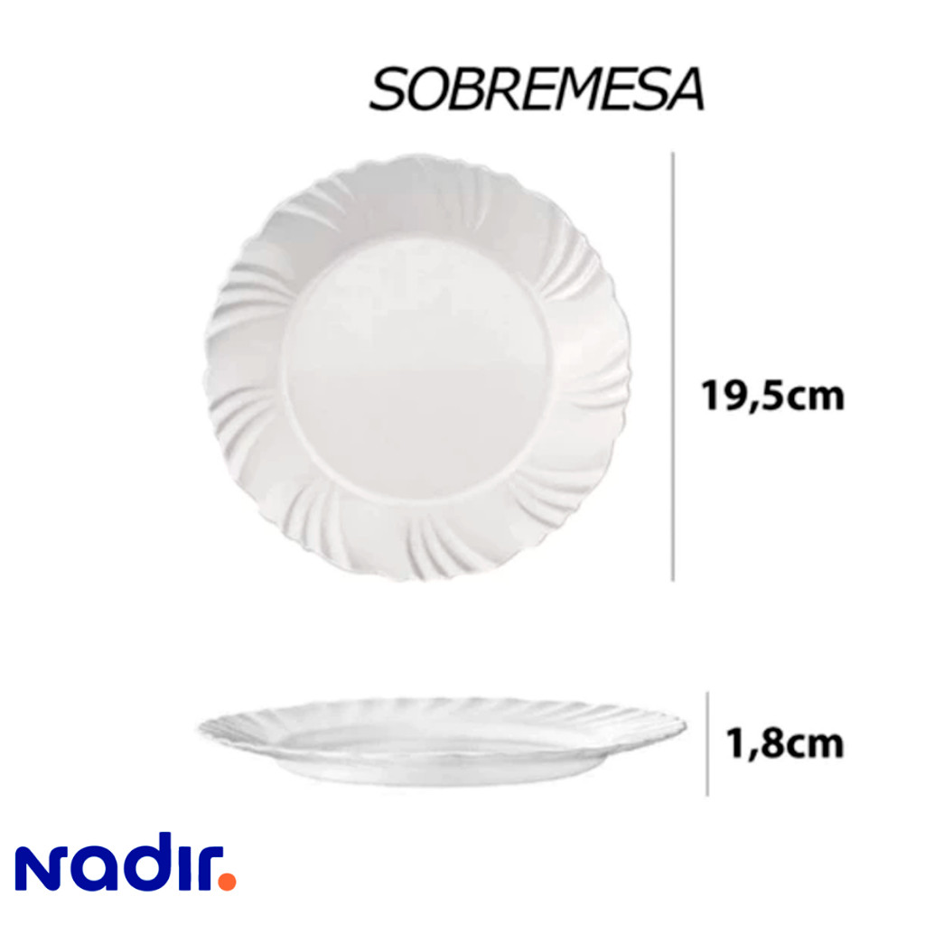 Jogo Prato de Sobremesa 06 Unidades Nadir Duralex em Vidro Kit Petala Branco Resistente Padaria