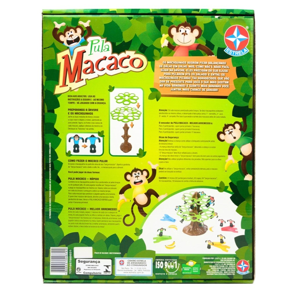 ***PRODUTO ESTRELA EM PORTUGUÊS ORIGINAL, OFICIAL, LACRADO E COM NOTA FISCAL*** JOGO PULA MACACO ESTRELA ÁRVORE BANANA ESTRATÉGIA IMPULSO BRINQUEDO INFANTIL EQUILÍBRIO FAMÍLIA Os macaquinhos adoram ficar balançando de galho em galho, mas, como não é nada fácil subir na árvore, eles precisam da sua ajuda para pularem até os galhos! E então os macaquinhos ficarão tão agradecidos, que vão dar de presente para você o que mais gostam na vida: Bananas! E quanto mais bananas você juntar, mais chances de ganhar! DICA AOS ADULTOS: LEIA AS INSTRUÇÕES A SEGUIR E AO MESMO TEMPO VÁ JOGANDO COM A CRIANÇA. PREPARANDO A ÁRVORE E OS MACAQUINHOS Junte as duas metades do tronco; encaixe a copa maior e depois a menor, apertando-as para prender. Agora, na frente e nas costas de cada macaco, aplique adesivos da mesma cor. Destaque as "bananas" da cartela. COMO FAZER O MACACO PULAR Encaixe o macaquinho na parte de cima do seu "lança-macaco". Aperte a pontinha do "lança-macaco" com o dedo e solte. lic.. o macaco pula para a árvore! Você pode jogar de duas formas: PULA MACACO - RÁPIDO Combine se os macaquinhos podem ficar pendurados só pelos braços ou de qualquer jeito. Aí cada jogador escolhe um "lança-macaco" e pega os macaquinhos da mesma cor. Depois, todos se colocam em volta da árvore e começam a atirar ao mesmo tempo. Para cada macaco que pendurar o jogador ganha uma banana. E quem tiver macaco derrubado, devolve uma banana e tenta pendurá-lo de novo. Vence o PULA MACACO RÁPIDO quem juntar 4 bananas primeiro! PULA MACACO - MELHOR ARREMESSO Antes de cada rodada, separe 1 macaco de cada cor e coloque na mesa. Aí cada jogador fecha os olhos e sorteia um deles. Depois, pega o "lança-macaco" da mesma cor e 4 bananas. Antes de arremessar, cada jogador coloca uma banana na mesa. Quem pendurar seu macaquinho na parte mais alta da árvore fez o melhor arremesso, vencendo quem estiver abaixo, e leva todas as bananas da mesa! Atenção: Só vale macaco pendurado pelos braços. Se dois macaquinhos estiverem pendurados na mesma altura, o desempate é feito pelas cores: 1° - vermelho, 2° - azul, 3° - verde, 4° - amarelo. Por isso é que existe o sorteio dos macacos antes de cada rodada. O vencedor do PULA MACACO - MELHOR ARREMESSO é: Para 2 participantes - quem juntar primeiro 7 bananas; Para 3 participantes - quem juntar primeiro 9 bananas; Para 4 participantes - quem juntar primeiro 11 bananas. Dicas: Atenção! Instrua a criança como utilizar o brinquedo corretamente antes de deixá-la brincar. - A criança deve ficar atrás do "lança-macaco", deixando a cabeça e o corpo fora da mira do macaco. - O "lança-macaco" deve ficar voltado para a árvore. - A criança não deve mirar o "lança-macaco" nem para ela nem para os outros jogadores. ATENÇÃO!: NÃO UTILIZAR PROJÉTEIS DIFERENTES DOS PROVIDOS E DOS INDICADOS PELO FABRICANTE DO BRINQUEDO NÃO APONTAR PARA OS OLHOS E PARA A FACE". Dica! Ao utilizar o "lança-macaco", evitar pressioná-lo demais, pois o macaco poderá ser lançado na vertical. Contém: 01 tronco (02 partes para montar), 02 copas, 04 "lança-macacos", 16 macaquinhos, 16 bananas de cartão e folha de adesivos. Informações: - Material: Plástico - Contém: 01 tronco, 02 copas, 04 'lanças-macacos', 16 macaquinhos, 16 bananas de cartão e folha de adesivos - EAN: 7896027548792 - Produto certificado INMETRO REGISTRO: 001 802/2020 - Peso 490g - JOGO - 4+ ANOS - De 2 a 4 jogadores - ESTRELA - Garantia: Contra defeitos de fabricação - Prazo de Validade: Indeterminado Obs: O produto e as cores podem variar do apresentado nas fotos da embalagem. ATENÇÃO! NÃO RECOMENDÁVEL PARA CRIANÇAS MENORES DE 3 (TRÊS) ANOS POR PODER GERAR PARTE(S) PEQUENA(S) QUE PODE(M) SER ENGOLIDA(S) OU ASPIRADA(S). SEJA MUITO BEM VINDO(A) A LOJA DE BRINQUEDOS CANAL40 *Enviamos seu pedido sempre no mesmo dia ou no máximo no próximo dia útil dependendo do horário da sua compra! *Produtos lacrados, originais e oficiais da mais alta qualidade; *Experiência única de compra (incluindo a experiência olfativa - você sentirá nosso cheiro); *Todos os nossos produtos estão à pronta entrega em nosso estoque físico aqui no Brasil; *Seu pedido será enviado com segurança e agilidade; Tenha tranquilidade de comprar com quem está disposto a te oferecer o melhor atendimento, caso tenha algum problema após a compra, conte com nossa equipe de pós venda para solucioná-lo! A LOJA DE BRINQUEDOS DO CANAL 40 tem a missão de garantir a satisfação total do seu cliente, tanto nos produtos quanto no atendimento. Assim estabelecemos uma relação única de confiança! Não encontrou o que procurava? Clique na foto da nossa logo para entrar em nossa loja e ver todos os nossos produtos OU nos mande uma mensagem diretamente aqui pelo chat. SERÁ UM PRAZER ATENDÊ-LO(A)! MUITO PRAZER, ME CHAMO FELIPE CAMARGO, SOU DONO, CEO E CRIADOR DE CONTEÚDO DO CANAL 40. DESDE JÁ, DEIXO AQUI O MEU MUITO OBRIGADO! CANAL 40 - LOJA DE BRINQUEDOS LTDA DEIXE SUA CRIANÇA INTERIOR FELIZ E APROVEITE!