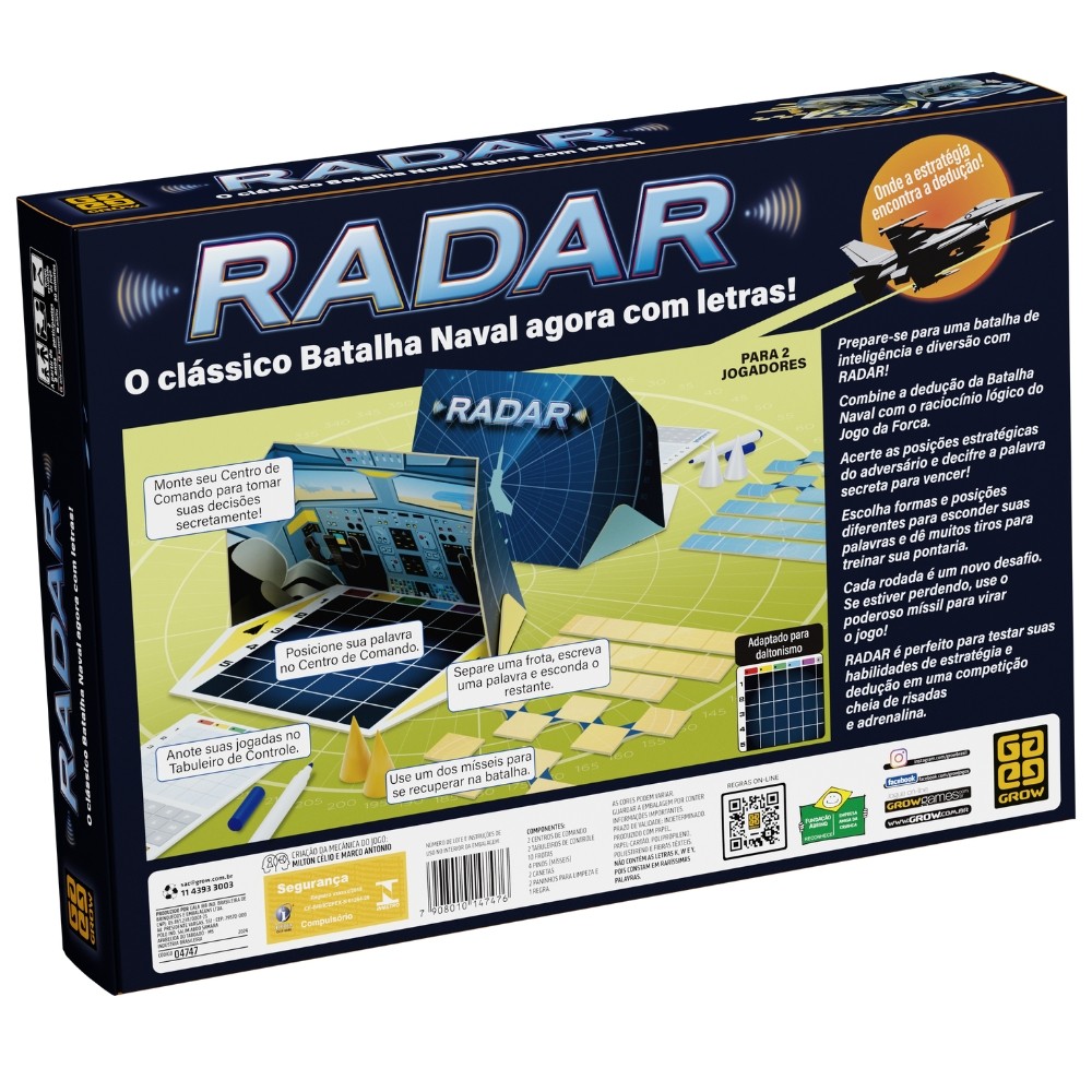 JOGO RADAR GROW BATALHA NAVAL LETRAS ESTRÁTEGIA DEDUÇÃO LÓGICA FORCA PALAVRA TIRO COMPETIÇÃO SECRETO