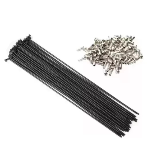 Jogo Raio Raiamento Fino Bike Mtb Preto 290mm x 2.0mm Com Niples (Com 36 Unidades) Bicicleta Aro 29