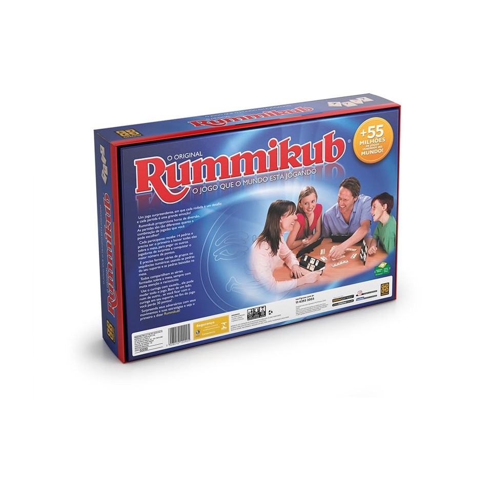 Um dos jogos de maior sucesso da Grow está aqui! Jogue Rummikub com seus amigos e tenha toda a atenção e raciocínio para sair como o grande vencedor! O desafio de Rummikub está em se livrar de todas as pedras em suas mãos antes dos seus oponentes. Será que você é capaz de vencê-los? O jogo Rummikub é ideal para 2 a 4 participantes a partir dos 7 anos! Todas as regras do jogo Rummikub estão incluídas junto com o manual do jogo. Basta encontrar suas companhias, seguir as regras e partir para a diversão! Contém: 104 pedras numeradas, 2 pedras-curinga, 4 suportes plásticos e 1 manual de instruções. Especificações: Marca: Grow Cód. Fabricante: 02090 Faixa Etária : A partir de 7 anos Dimensões da embalagem : 30 x 42 x 8 cm Peso: 500g Participantes: 2 a 4 Garantia do Vendedor: 7 dias Garantia do fabricante: 3 meses Código de Barras: 7908010120905 Certificação Inmetro: CE-BRI/ICEPEX-N 01264-25 - NM300-2004 OCP 0046 Não recomendável para menores de 3 anos, por conter partes pequenas. Produto original, novo, lacrado e acompanhado de Nota Fiscal.