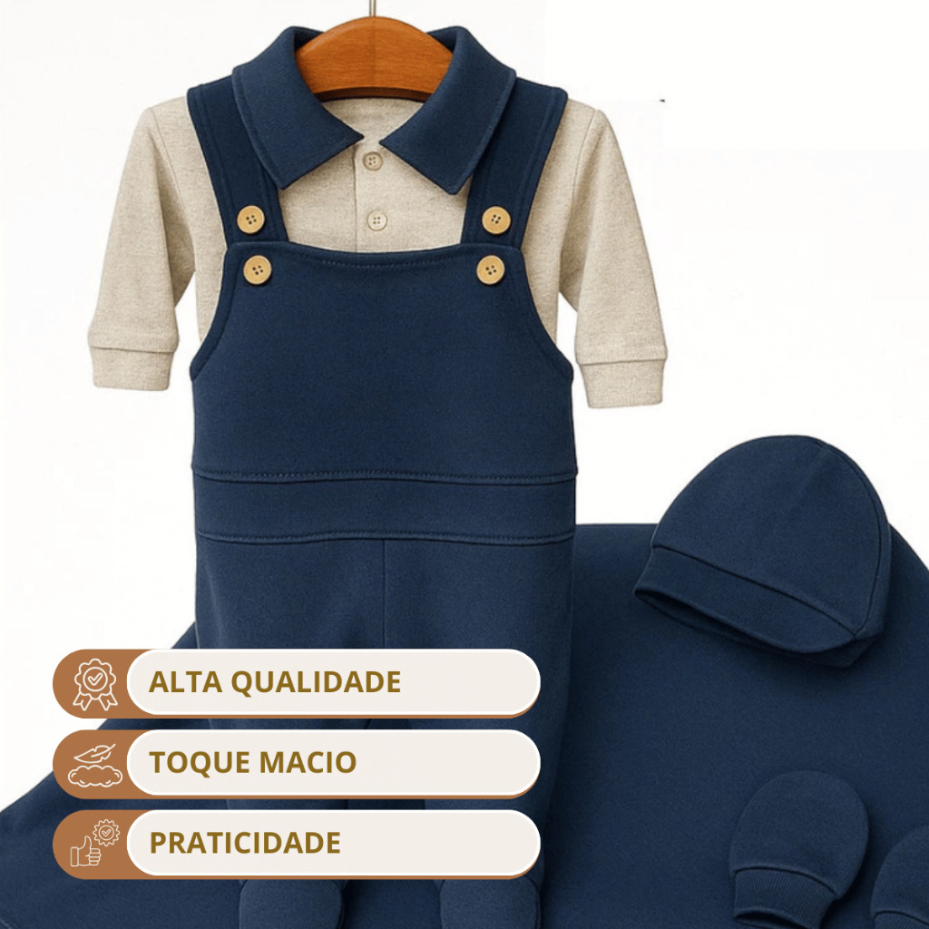 Encante-se com essa saída maternidade composta por 5 peças que unem elegância, conforto e praticidade. O conjunto foi desenvolvido para proporcionar bem-estar ao recém-nascido, com tecidos macios e modelagem confortável, ideal para os primeiros momentos do bebê. Ideal para saída da maternidade, primeiros passeios e registros fotográficos especiais. Conteúdo da Embalagem: 01 Macacão 01 Body Manga Longa 01 Boné 01 Par de Luvas 01 Manta Medidas: Macacão altura: 42cm Macacão busto: 24cm Macacão quadril: 26cm Body altura: 35cm Body busto: 21cm Body quadril: 21cm Manta: 80cm altura x 80cm largura Boné: 32cm circunferência