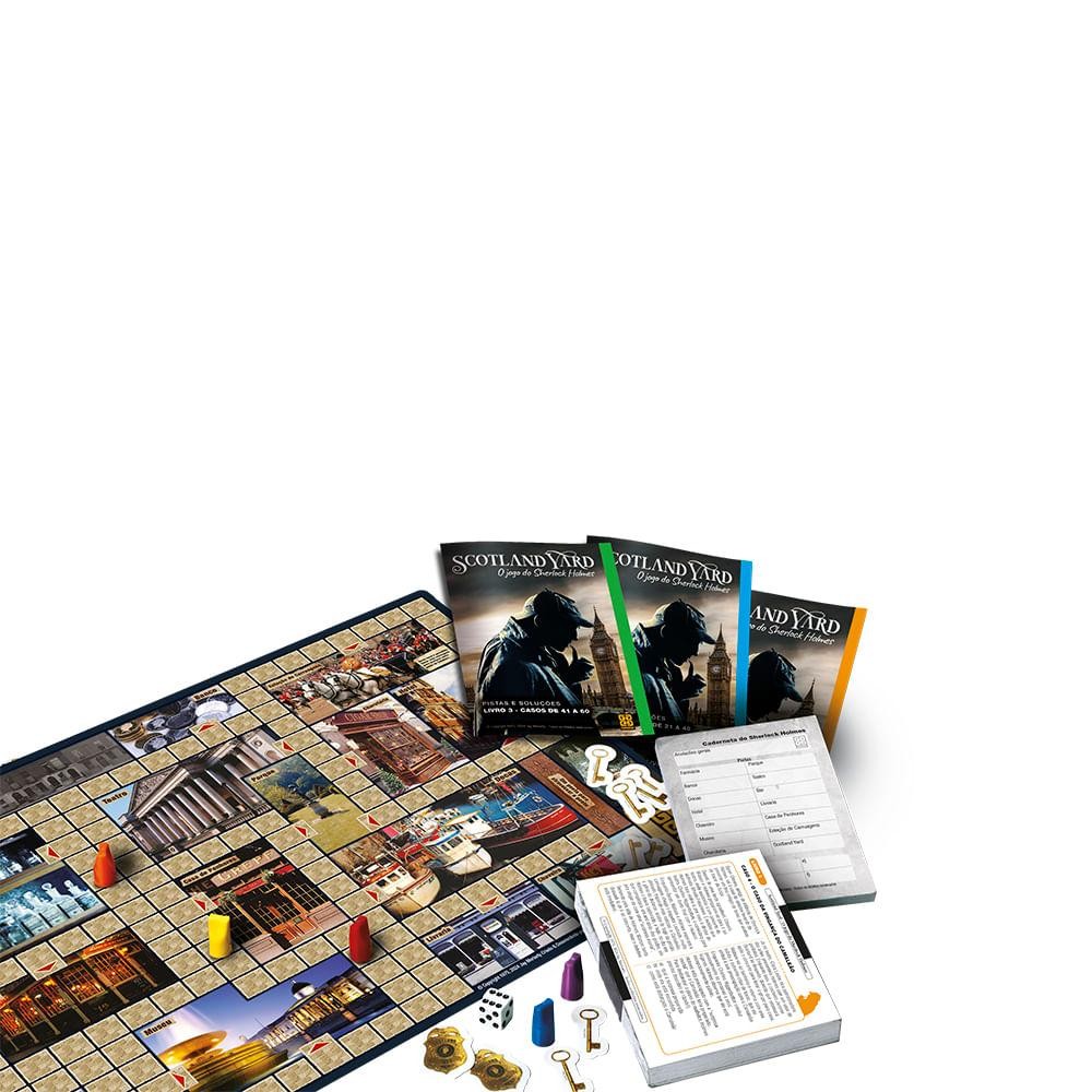 Scotland Yard - O Jogo do Sherlock Holmes Uma combinação perfeita entre dedução e mistério. Scotland Yard é um jogo de raciocínio e dedução no qual você precisa desvendar mistérios e investigar casos misteriosos pelas ruas de Londres. O jogo Scotland Yard é ideal para participantes acima dos 10 anos! Investigando pela cidade, você coletará pistas que o ajudarão a desvendar os casos. Mas as pistas não são tão simples assim. Como no mundo real, elas são enigmas que vão exigir toda a sua capacidade de dedução! Investigue pela cidade, cheque os locais suspeitos e anote todas as informações que conseguir. No final, separe os fatos mais importantes e lembre-se: os outros participantes também estão em busca das respostas. Vence quem desvendar o caso primeiro! São 60 casos para você desvendar! Baseado no jogo 221B Baker Street ® Todos os direitos reservados 60 casos A partir de 10 anos 2 a 6 participantes