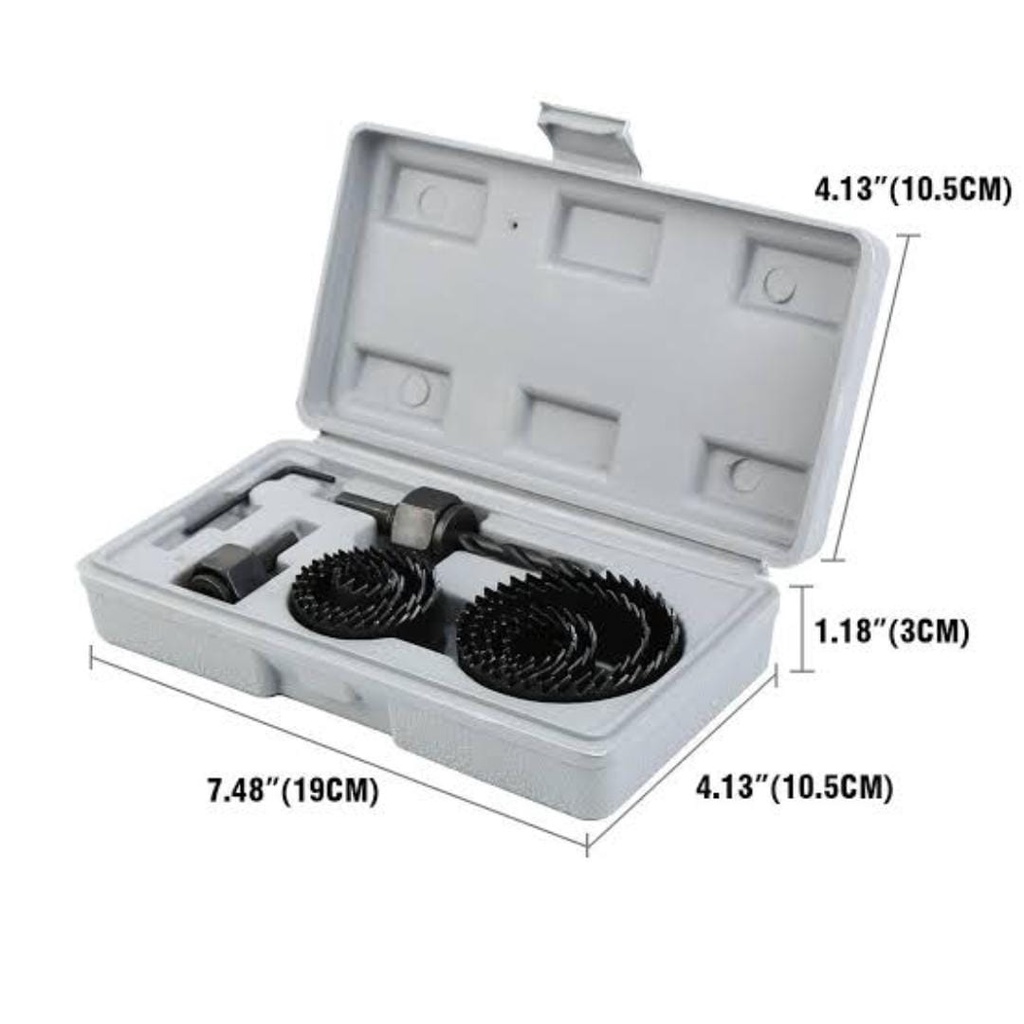 Kit Jogo Serra Copo Profissional Maleta 11 Pçs Madeira Gesso Recomendada para uso em madeira, gesso e plástico. Contém 11 peças: - 8 serras copo, - 1 chave allen, - 2 hastes 1/4' , 3/8'. 8 Serras Copo: 3/4' (19mm), 7/8' (22mm), 1 1/8' (28mm), 1 1/4' (32mm), 1 1/2' (38mm),1 3/4' (44mm),2' (51mm), 2 1/2'(64mm). Profundidade do corte: 25 mm; Material: Aço Carbono e Estojo de Plástico. Dimensões: Estojo: Altura: 4 cm Largura: 10 cm Comprimento: 19 cm