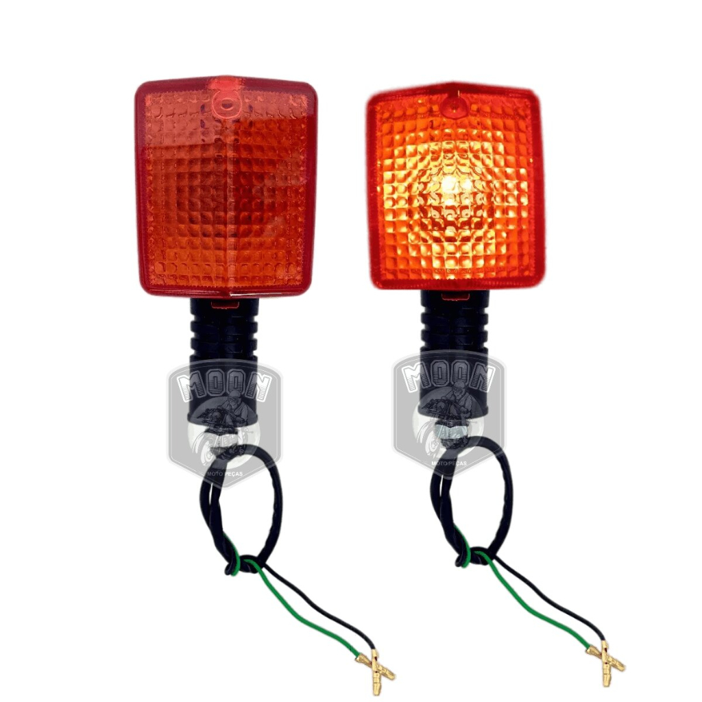 -- JOGO = 4 PISCAS COM LÂMPADAS -- PAR = 2 PISCAS COM LÂMPADAS Características: - Lente nas cores: -- Laranja - Cristal - Fumê ( ESCOLHA A SUA COR NO ATO DA COMPRA) - Com Chicote - Com Lâmpadas - Excelente Qualidade - Modelo da Foto Real do Produto -- Aplicações Originais: - Honda CBX200 - NX150/ 200/ 350 - XLX 350 Conteúdo da Embalagem: - 2 peças Pisca/ Seta Dianteiro - 2 peças Pisca/ Seta Traseiro IMPORTANTE: - Garantia contra defeitos de fabricação. - Não nos responsabilizamos pelo mau uso do produto. - Recomendamos que a troca/ instalação seja realizada por um profissional qualificado. - Tire todas as dúvidas no chat, temos uma equipe totalmente qualificada a disposição pronta para ajudar. ATENÇÃO! - AS ETIQUETAS DE ENVIO SÃO GERADAS AUTOMATICAMENTE ATRAVÉS DO SEU CADASTRO VERIFIQUE CORRETAMENTE SEU ENDEREÇO PARA EVITAR PROBLEMAS CAUSADOS NA ENTREGA DOS PRODUTOS! OBRIGADO. MOON MOTO PEÇAS.