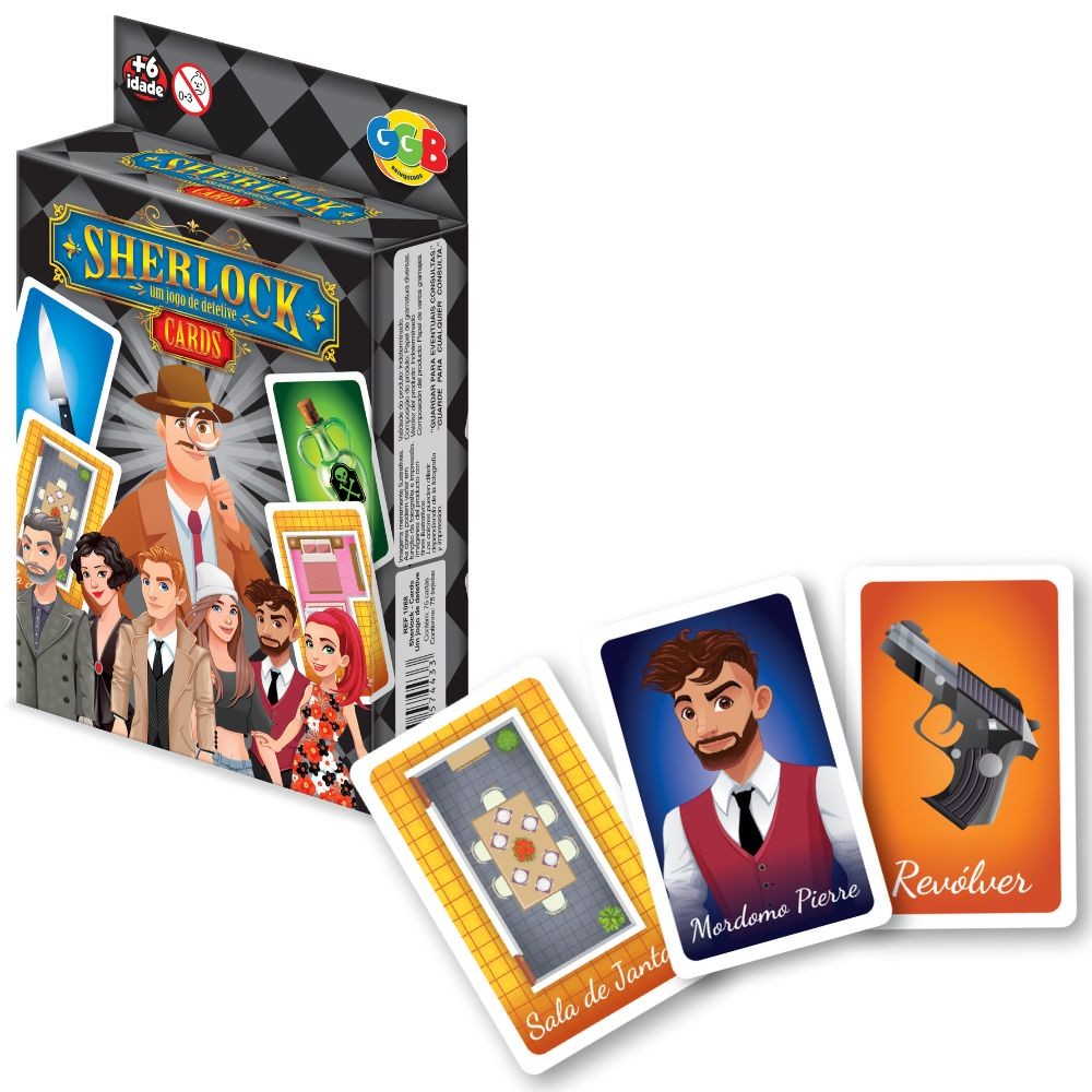 JOGO SHERLOCK 75 CARTAS GGB BRINQUEDO MESA DETETIVE SCOTLAND YARD HOLMES SUSPEITO INVESTIGAÇÃO CRIME