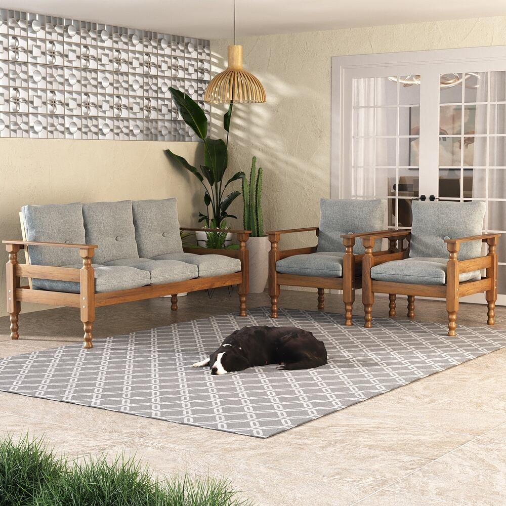 Jogo Sofá Madeira Maciça 3 Lugares e 2 Poltronas Liz Multimóveis VCR7001