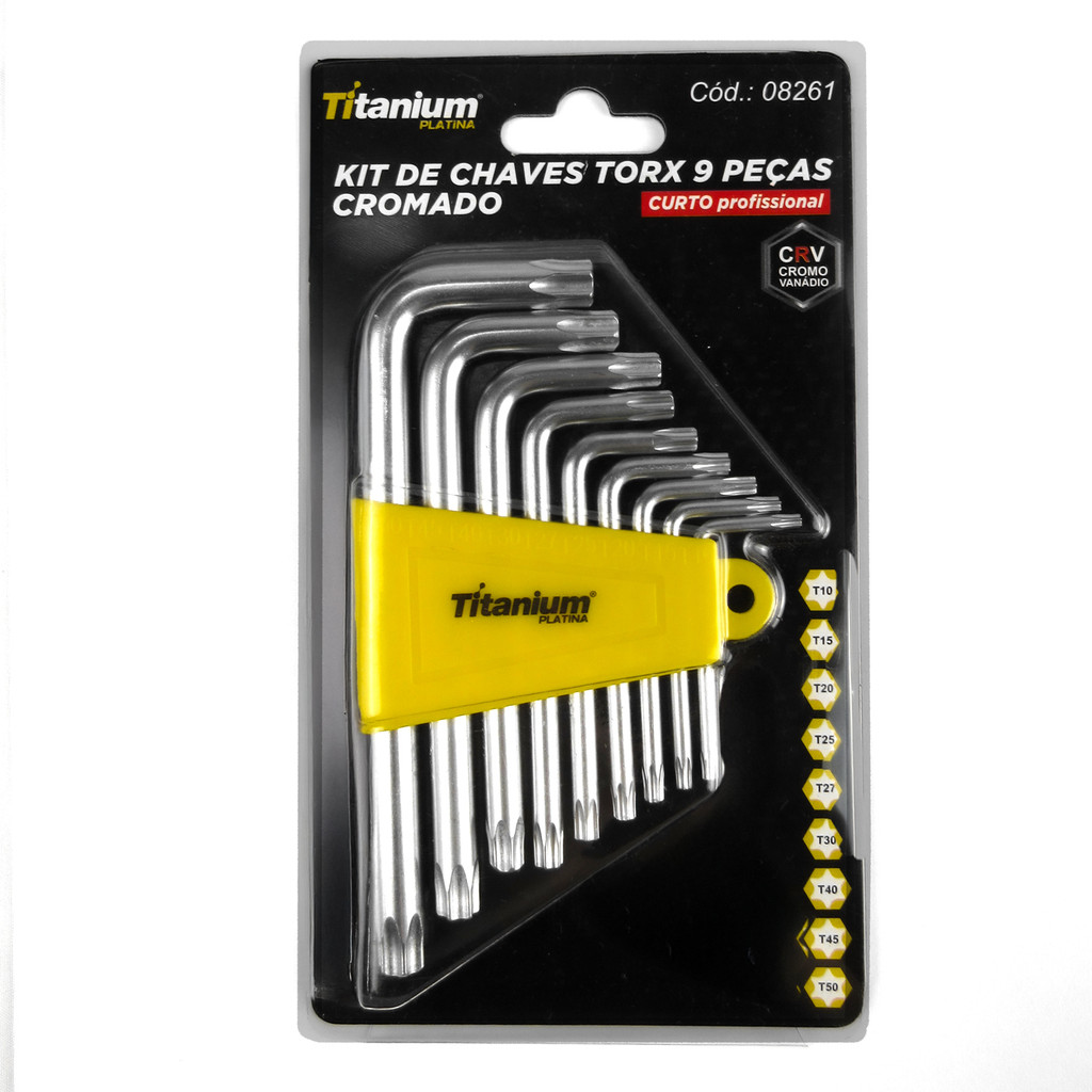 Jogo Soquete 40 Peças + Jogo Chave Torx Curto CRV 9 Peças Profissional Titanium Platina