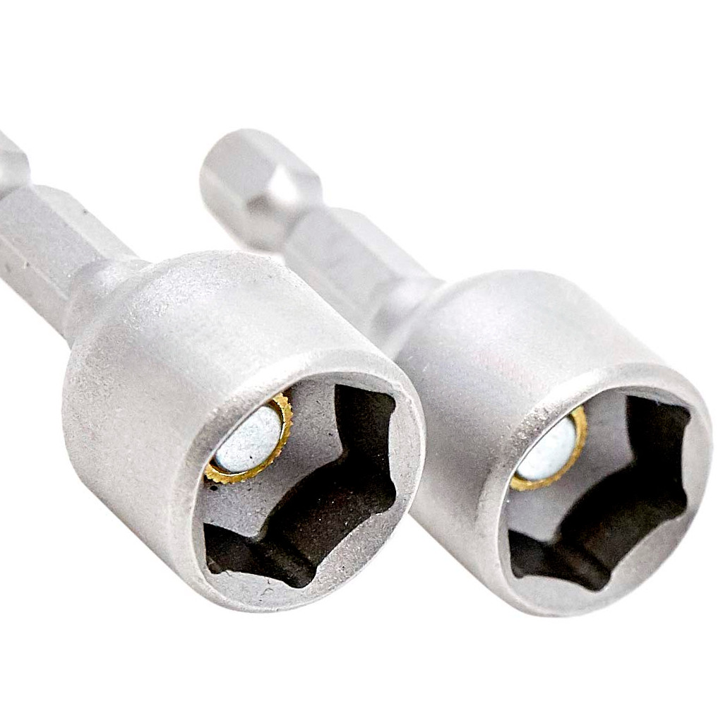 Jogo Soquetes Magnéticos 2 Peças 45x7mm Para Parafusadeira Furadeira Bits Encaixe 1/4Pol. Sextavado