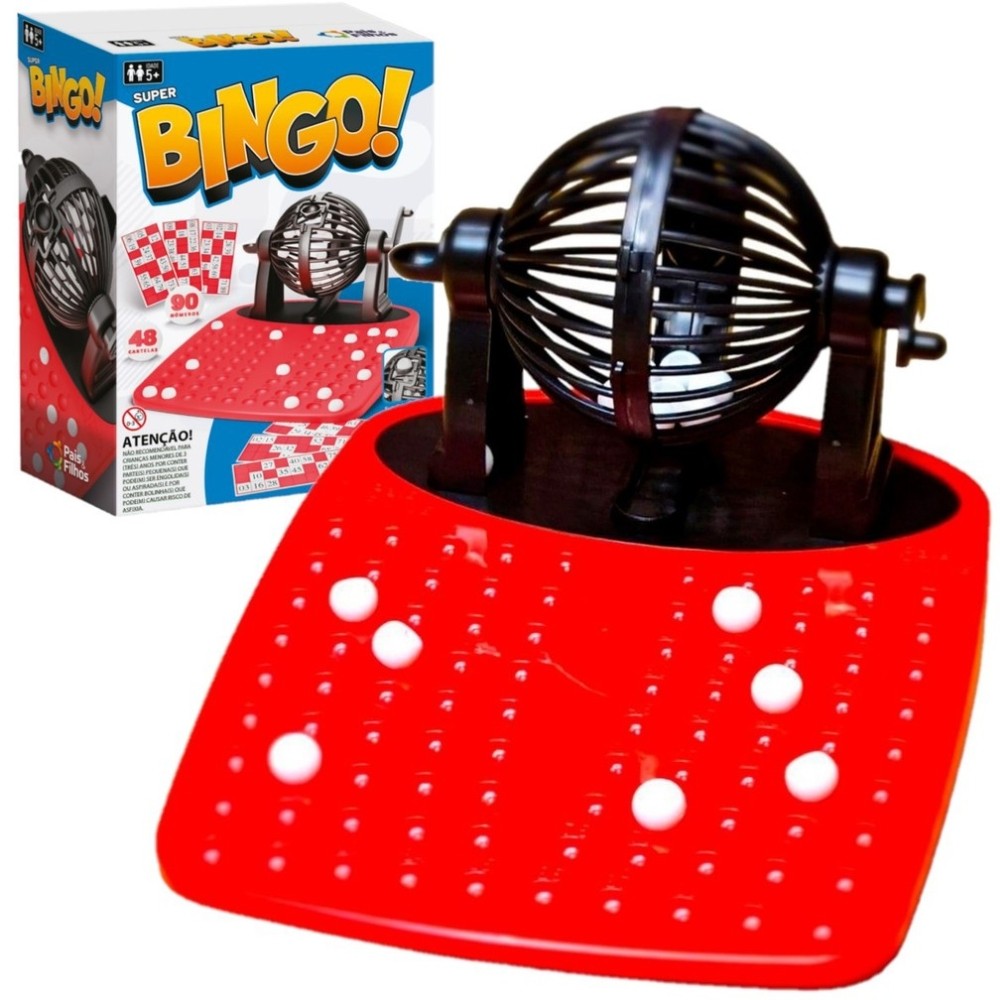 ***PRODUTO PAIS E FILHOS EM PORTUGUÊS, ORIGINAL, OFICIAL, LACRADO E COM NOTA FISCAL*** JOGO SUPER BINGO 90 NÚMEROS 48 CARTELAS PAIS E FILHOS FAMÍLIA CRIANÇA GLOBO BOLINHAS NUMERADAS GIRAR Informações Técnicas: - Material: Papel Cartão e Resina Termoplástica. - Contém: 1 globo, 1 base plástica, 90 números e 48 cartelas. - EAN: 7908470012994 - Código: 791299 - Produto certificado: INMETRO REGISTRO: 003723/2019 - Dimensões: 24cm x 13cm x 33cm - Peso: 516g - JOGO - 5+ ANOS - PAIS E FILHOS - Garantia: Contra defeitos de fabricação - Prazo de Validade: Indeterminado Obs: O tamanho de cada peça pode sofrer variações. Imagens meramente ilustrativas. O produto e as cores podem variar de acordo com o apresentado na embalagem. ATENÇÃO! NÃO RECOMENDÁVEL PARA CRIANÇAS MENORES DE 3 (TRÊS) ANOS POR PODER GERAR PARTE(S) PEQUENA(S) QUE PODE(M) SER ENGOLIDA(S) OU ASPIRADA(S). COMO JOGAR 1 - Cada jogador pega uma cartela do Bingo e um jogador ficará de Crupiê (responsável por girar o globo e anunciar as bolinhas sorteadas) *Cada cartela possui 15 números, distribuídos em 3 linhas de 5 números. 2 - O Crupiê, deverá girar o globo em sentido horário. Depois que o globo parar, uma bolinha deverá ser retirada, informada em voz alta e colocada no quadro de números (para facilitar a conferência do vencedor do Bingo) *Se a bolinha enroscar, segure a alça e gire no sentido horário para empurrar a bolinha para o suporte. 3- O jogador que tiver um de seus números lido pelo Crupiê, poderá marcar esse em sua cartela. *Sugestão: usar feijões ou pedrinhas para marcar as cartelas ao invés de riscá-las com caneta ou lápis. 4 - O jogo seguirá dessa maneira, repetindo os passos 2 e 3. 5 - Vence o jogador que preencher uma das linhas horizontais da cartela e/ou a cartela inteira. --------------------------------------------------- SEJA MUITO BEM VINDO(A) A LOJA DE BRINQUEDOS DO CANAL 40 POR QUÊ COMPRAR NA LOJA DE BRINQUEDOS DO CANAL 40? *Enviamos seu pedido sempre no mesmo dia ou no máximo no próximo dia útil dependendo do horário da sua compra! *Produtos lacrados, originais e oficiais da mais alta qualidade; *Experiência única de compra (incluindo a experiência olfativa - você sentirá nosso cheiro); *Todos os nossos produtos estão à pronta entrega em nosso estoque físico aqui no Brasil; *Seu pedido será enviado com segurança e agilidade; IMPORTANTE: Tenha tranquilidade de comprar com quem está disposto a te oferecer o melhor atendimento, caso tenha algum problema após a compra, conte com nossa equipe de pós venda para solucioná-lo! A LOJA DE BRINQUEDOS DO CANAL 40 tem a missão de garantir a satisfação total do seu cliente, tanto nos produtos quanto no atendimento. Assim estabelecemos uma relação única de confiança! Não encontrou o que procurava? Clique na foto da nossa logo para entrar em nossa loja e ver todos os nossos produtos OU nos mande uma mensagem diretamente aqui pelo chat. SERÁ UM PRAZER ATENDÊ-LO(A)! --------------------------------------------------- MUITO PRAZER, ME CHAMO FELIPE CAMARGO, SOU DONO, CEO E CRIADOR DE CONTEÚDO DO CANAL 40. DESDE JÁ, DEIXO AQUI O MEU MUITO OBRIGADO!!! CANAL 40 - LOJA DE BRINQUEDOS LTDA DEIXE SUA CRIANÇA INTERIOR FELIZ E APROVEITE!