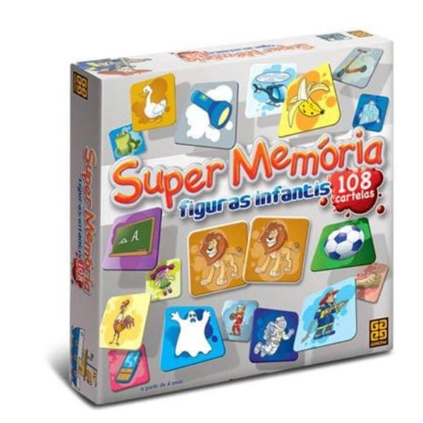 Jogo Super Memória Figuras Infantis 108 Cartelas - Grow O Super Memória Figuras Infantis permite à criança assimilar pouco a pouco cada fase do jogo. Com a orientação de um adulto, ela pode começar a jogar com 18 catelas, depois passar para 36, até conseguir jogar com as 108 cartelas ao mesmo tempo. Divirta-se com sua família e amigos com este jogo desafiador! - Conteúdo da embalagem:108 cartelas e 1 manual de instruções - Objetivo do jogo: Possuir o maior número de pares no final da partida - Como jogar: Espalhe as cartelas sobre a mesa, vá abrindo duas de cada vez, se for iguais fique com elas e passe a vez. Quem formar o maior número de pares é o vencedor.