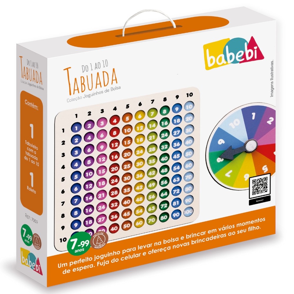 ***PRODUTO BABEBI EM PORTUGUÊS, ORIGINAL, OFICIAL, LACRADO E COM NOTA FISCAL*** JOGO TABUADA DO 1 A 10 JOGUINHO DE BOLSA BABEBI MADEIRA TABULEIRO EDUCATIVO LÓGICO MATEMÁTICA BRINCA Informações Técnicas: - Material: Madeira Reflorestada (MDF reflorestada), Papel e Plástico. - Contém: 1 tabuleiro com a tabuada do 1 ao 10 e 1 roleta. - Estímulo: Números e Quantidades, Raciocínio Lógico - EAN: 7898102627590 - Código: 7059 - Produto certificado: INMETRO REGISTRO:009272/2022 - Dimensões: 5cm x 17cm x 17cm - Peso: 160g - JOGO - Idade: 7+ ANOS - Marca: Babebi - Garantia: Contra defeitos de fabricação - Prazo de Validade: Indeterminado MAIS QUE BRINQUEDOS, CRIAMOS LAÇOS DE AMOR ENTRE PAIS E FILHOS Obs: O tamanho de cada peça pode sofrer variações. Imagens meramente ilustrativas. O produto e as cores podem variar de acordo com o apresentado na embalagem. ATENÇÃO! NÃO RECOMENDÁVEL PARA CRIANÇAS MENORES DE 3 (TRÊS) ANOS POR PODER GERAR PARTE(S) PEQUENA(S) QUE PODE(M) SER ENGOLIDA(S) OU ASPIRADA(S). A MARCA MAIS INDICADA POR PROFISSIONAIS DO DESENVOLVIMENTO INFANTIL Descubra um jeito divertido de aprender a tabuada! Com o nosso tabuleiro ilustrado e uma roleta vibrante, as crianças giram, exploram e memorizam a tabuada do 1 ao 10 enquanto se divertem. Estimulando o raciocínio lógico e a criatividade, este jogo transforma a matemática em uma aventura lúdica e educativa!. Feito de madeira MDF reflorestada, contém 1 tabuleiro com a tabuada do 1 ao 10 e 1 roleta. Indicado para crianças a partir de 7 anos. Utilizamos materiais seguros, duráveis e ecológicos. Colocar na boca pode danificar o produto. --------------------------------------------------- SEJA MUITO BEM VINDO(A) A LOJA DE BRINQUEDOS DO CANAL 40 POR QUÊ COMPRAR NA LOJA DE BRINQUEDOS DO CANAL 40? *Enviamos seu pedido sempre no mesmo dia ou no máximo no próximo dia útil dependendo do horário da sua compra! *Produtos lacrados, originais e oficiais da mais alta qualidade; *Experiência única de compra (incluindo a experiência olfativa - você sentirá nosso cheiro); *Todos os nossos produtos estão à pronta entrega em nosso estoque físico aqui no Brasil; *Seu pedido será enviado com segurança e agilidade; IMPORTANTE: Tenha tranquilidade de comprar com quem está disposto a te oferecer o melhor atendimento, caso tenha algum problema após a compra, conte com nossa equipe de pós venda para solucioná-lo! A LOJA DE BRINQUEDOS DO CANAL 40 tem a missão de garantir a satisfação total do seu cliente, tanto nos produtos quanto no atendimento. Assim estabelecemos uma relação única de confiança! Não encontrou o que procurava? Clique na foto da nossa logo para entrar em nossa loja e ver todos os nossos produtos OU nos mande uma mensagem diretamente aqui pelo chat. SERÁ UM PRAZER ATENDÊ-LO(A)! --------------------------------------------------- MUITO PRAZER, ME CHAMO FELIPE CAMARGO, SOU DONO, CEO E CRIADOR DE CONTEÚDO DO CANAL 40. DESDE JÁ, DEIXO AQUI O MEU MUITO OBRIGADO!!! CANAL 40 - LOJA DE BRINQUEDOS LTDA DEIXE SUA CRIANÇA INTERIOR FELIZ E APROVEITE!