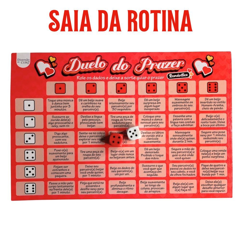 Jogo Tabuleiro Erótico Duelo do Prazer Romântico 36 Desafios + 2 Dados Diversão ao Cubo Sex Shop