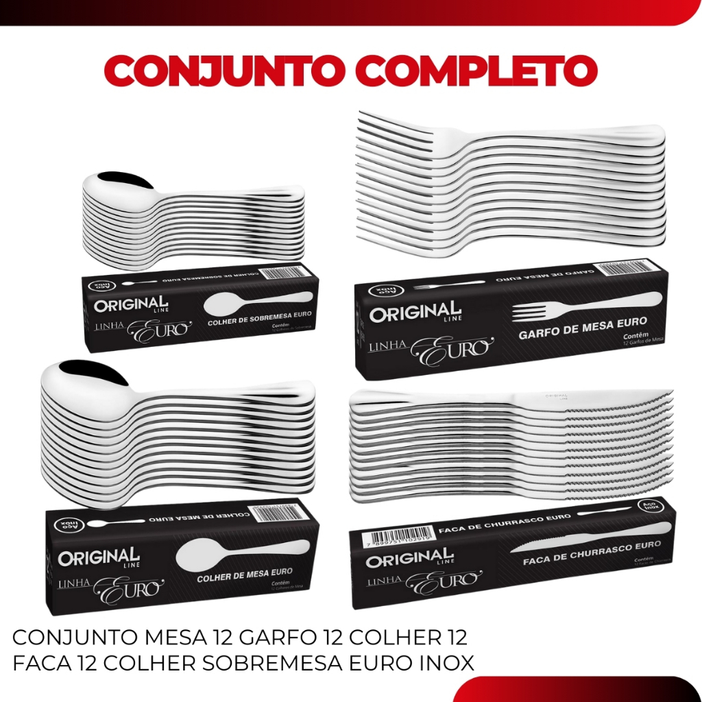 Jogo Talher Inox 48 Pecas Garfo Faca Colher Sobremesa Restaurante Buffet Premium Euro Original Line