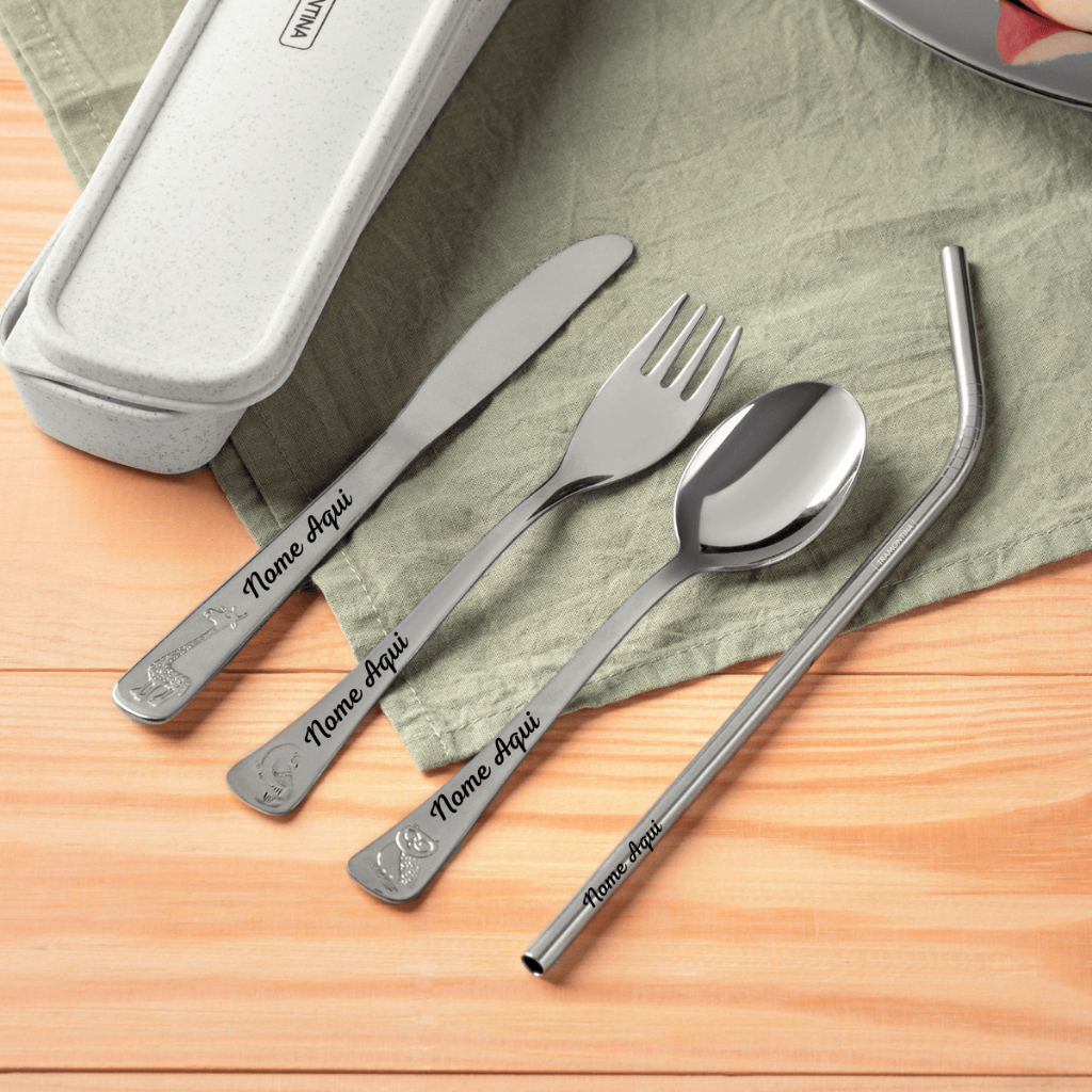 Jogo Talheres Infantil Personalizados Nome Aço Inox C/ Estojo Tramontina