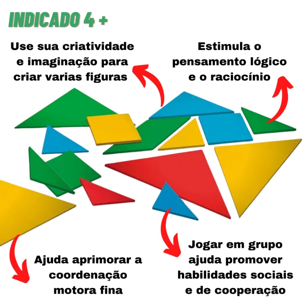 ***PRODUTO XALINGO EM PORTUGUÊS, ORIGINAL, OFICIAL, LACRADO E COM NOTA FISCAL*** JOGO TANGRAM XALINGO RACIOCÍNIO LÓGICO MADEIRA REFLORESTADA FIGURA HABILIDADE SOCIAL CRIANÇA DESENHO A simplicidade e a capacidade de representar mais de mil figuras fazem do Tangram, um brinquedo fascinante. Surgiu na China há mais de mil anos, e seu nome significa tábua das sete sabedorias. Esse jogo é composto por 4 conjuntos de peças com cores diferentes. Ele desenvolve a atenção, a discriminação visual, o pensamento lógico, as noções de formas geométricas e a relação parte-todo/todo-parte, e proporciona desafios mentais que aguçam a imaginação e a chatividade da criança. Informações Técnicas: - Material: Madeira Reflorestada - Contém: 28 peças em Madeira Reflorestada. - EAN: 7896640404420 - Código: 0442.1 - Produto certificado: INMETRO REGISTRO 006412/2020 - Fabricado no Brasil - Dimensões da embalagem: 16 x 21 x 5cm - Peso: 265g - JOGO - A partir de 4+ ANOS - Marca: XALINGO - Garantia: Contra defeitos de fabricação: 3 meses pelo fabricante - Prazo de Validade: Indeterminado Obs: As cores do produto podem variar conforme a produção. Fotos meramente ilustrativas! ATENÇÃO! NÃO RECOMENDÁVEL PARA CRIANÇAS MENORES DE 3 (TRÊS) ANOS POR PODER GERAR PARTE(S) PEQUENA(S) QUE PODE(M) SER ENGOLIDA(S) OU ASPIRADA(S). --------------------------------------------------- SEJA MUITO BEM VINDO(A) A LOJA DE BRINQUEDOS DO CANAL 40 POR QUÊ COMPRAR NA LOJA DE BRINQUEDOS DO CANAL 40? *Enviamos seu pedido sempre no mesmo dia ou no máximo no próximo dia útil dependendo do horário da sua compra! *Produtos lacrados, originais e oficiais da mais alta qualidade; *Experiência única de compra (incluindo a experiência olfativa - você sentirá nosso cheiro); *Todos os nossos produtos estão à pronta entrega em nosso estoque físico aqui no Brasil; *Seu pedido será enviado com segurança e agilidade; IMPORTANTE: Tenha tranquilidade de comprar com quem está disposto a te oferecer o melhor atendimento, caso tenha algum problema após a compra, conte com nossa equipe de pós venda para solucioná-lo! A LOJA DE BRINQUEDOS DO CANAL 40 tem a missão de garantir a satisfação total do seu cliente, tanto nos produtos quanto no atendimento. Assim estabelecemos uma relação única de confiança! Não encontrou o que procurava? Clique na foto da nossa logo para entrar em nossa loja e ver todos os nossos produtos OU nos mande uma mensagem diretamente aqui pelo chat. SERÁ UM PRAZER ATENDÊ-LO(A)! --------------------------------------------------- MUITO PRAZER, ME CHAMO FELIPE CAMARGO, SOU DONO, CEO E CRIADOR DE CONTEÚDO DO CANAL 40. DESDE JÁ, DEIXO AQUI O MEU MUITO OBRIGADO!!! CANAL 40 - LOJA DE BRINQUEDOS LTDA DEIXE SUA CRIANÇA INTERIOR FELIZ E APROVEITE!