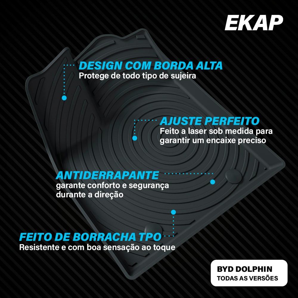Jogo Tapete Automotivo Premium Bandeja De Borracha Para Carro BYD Dolphin Conjunto Com 3 peças Ekap