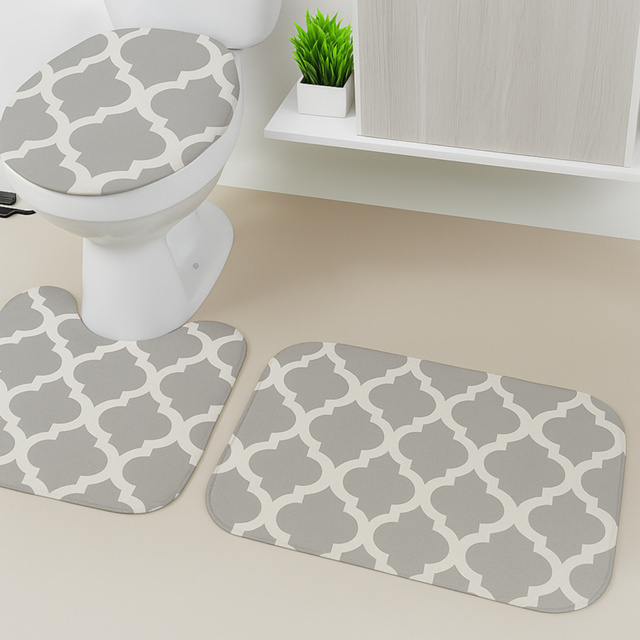 Jogo Tapete Banheiro 3 Peças Antiderrapante Super Lavável Várias Cores Premium