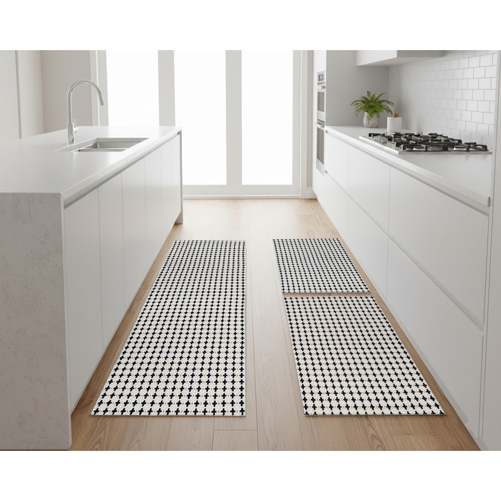 Jogo Tapete Boho Andaraí Off White/Preto Algodão 3pç