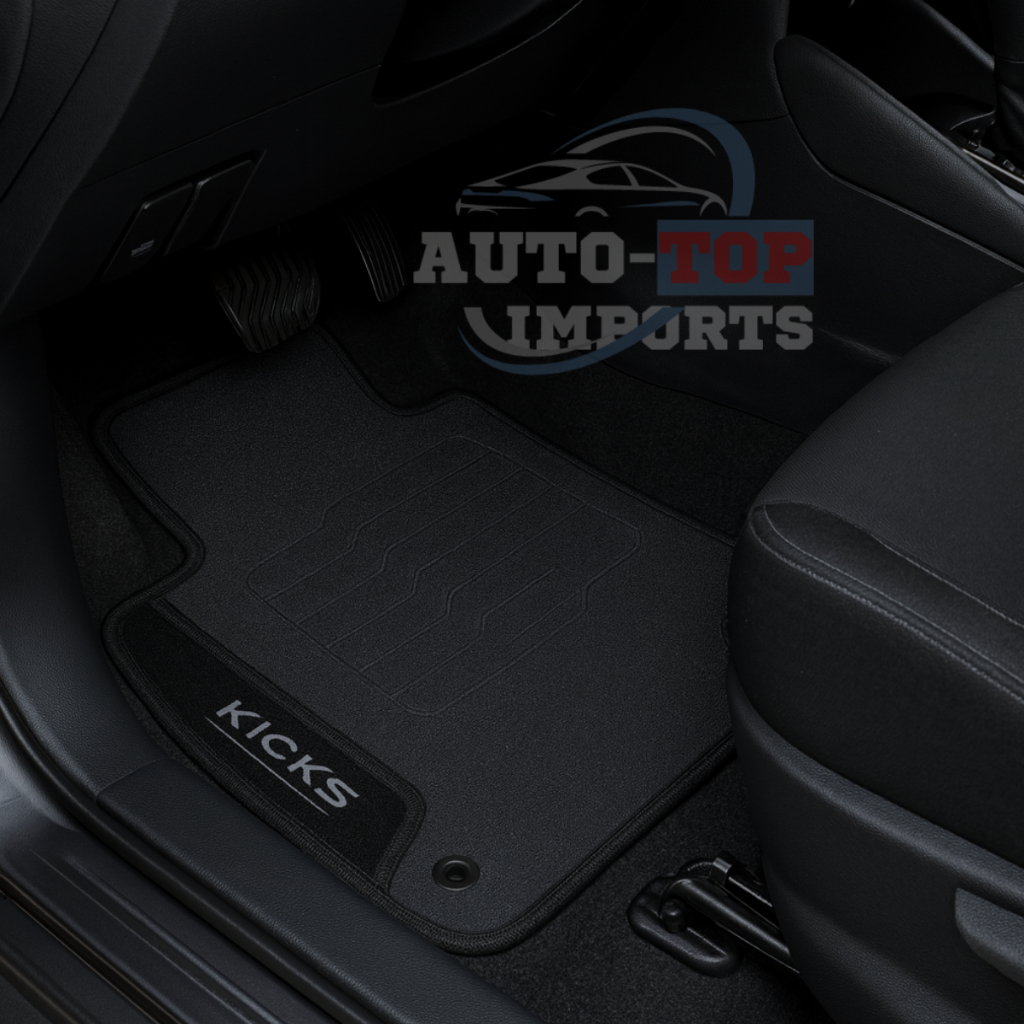 • DISTRIBUIDO POR: AutoTop Imports • JOGO DE TAPETES BORRACHA, PRETO PERSONALIZADO COM LOGO BORDADO " KICKS " • 02 Tapetes dianteiros com Logo "KICKS" bordado • 01 Tapete traseiro Inteiriço • COMPATÍVEL COM: • NISSAN KICKS: Sense, Advance, Exclusive e Platinum Ano 2025....... em diante **Características:** - **Material Premium ** Fabricados com Borracha de alta qualidade, garantindo resistência e durabilidade excepcionais. - **Alta Definição:** O logo é bordado em alta definição, proporcionando um toque personalizado e sofisticado ao seu carro. - **Conjunto Completo para seu veículo. - **Sistema de Fixação Inteligente:** Ilhós na peça do motorista proporcionam aderência superior, evitando que o tapete se enrosque nos pedais, garantindo sua segurança durante a condução. - **Resistente a Mofo:** Protege o carpete original do seu veículo contra umidade e mofo, mantendo o interior sempre fresco e livre de odores indesejados. - **Secagem Rápida e Fácil Limpeza:* Permitem limpeza fácil e rápida, e sua rápida secagem é ideal para os dias corridos. *Acabamento de Qualidade:* Costurado em viés em todo o contorno e com solape para o conforto do motorista, garantindo durabilidade e estilo.