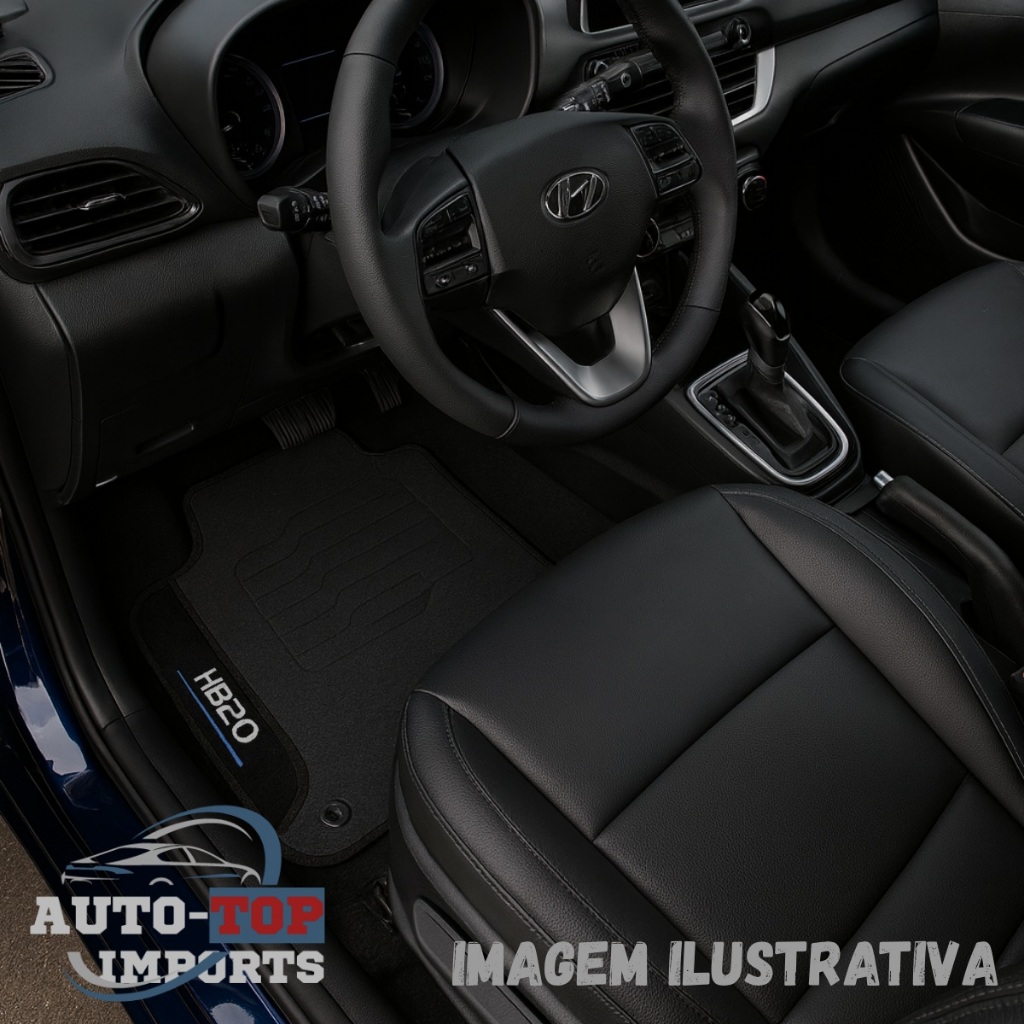 • DISTRIBUIDO POR: AutoTop Imports • JOGO DE TAPETES EMBORRACHADO PERSONALIZADO COM LOGO BORDADO " HB20 " • 02 Tapetes dianteiros com Logo " HB20 " bordado • 01 Tapete Traseiro Inteiriço • COMPATÍVEL COM: • Hyundai HB20: Ano 2012 2013 2014 2015 2016 2017 2018 2019....... **Características:** - **Material Premium ** Fabricados com um emborrachado de alta qualidade com 4mm de espessura, garantindo resistência e durabilidade excepcionais. - **Alta Definição:** O logo é bordado em alta definição, proporcionando um toque personalizado e sofisticado ao seu carro. - **Conjunto Completo para seu veículo. - **Sistema de Fixação Inteligente:** Ilhós na peça do motorista proporcionam aderência superior, evitando que o tapete se enrosque nos pedais, garantindo sua segurança durante a condução. - **Impermeável e Resistente a Mofo:** Protege o carpete original do seu veículo contra umidade e mofo, mantendo o interior sempre fresco e livre de odores indesejados. - **Secagem Rápida e Fácil Limpeza:* Permitem limpeza fácil e rápida, e sua rápida secagem é ideal para os dias corridos. *Acabamento de Qualidade:* Costurado em viés em todo o contorno e com solape para o conforto do motorista, garantindo durabilidade e estilo.