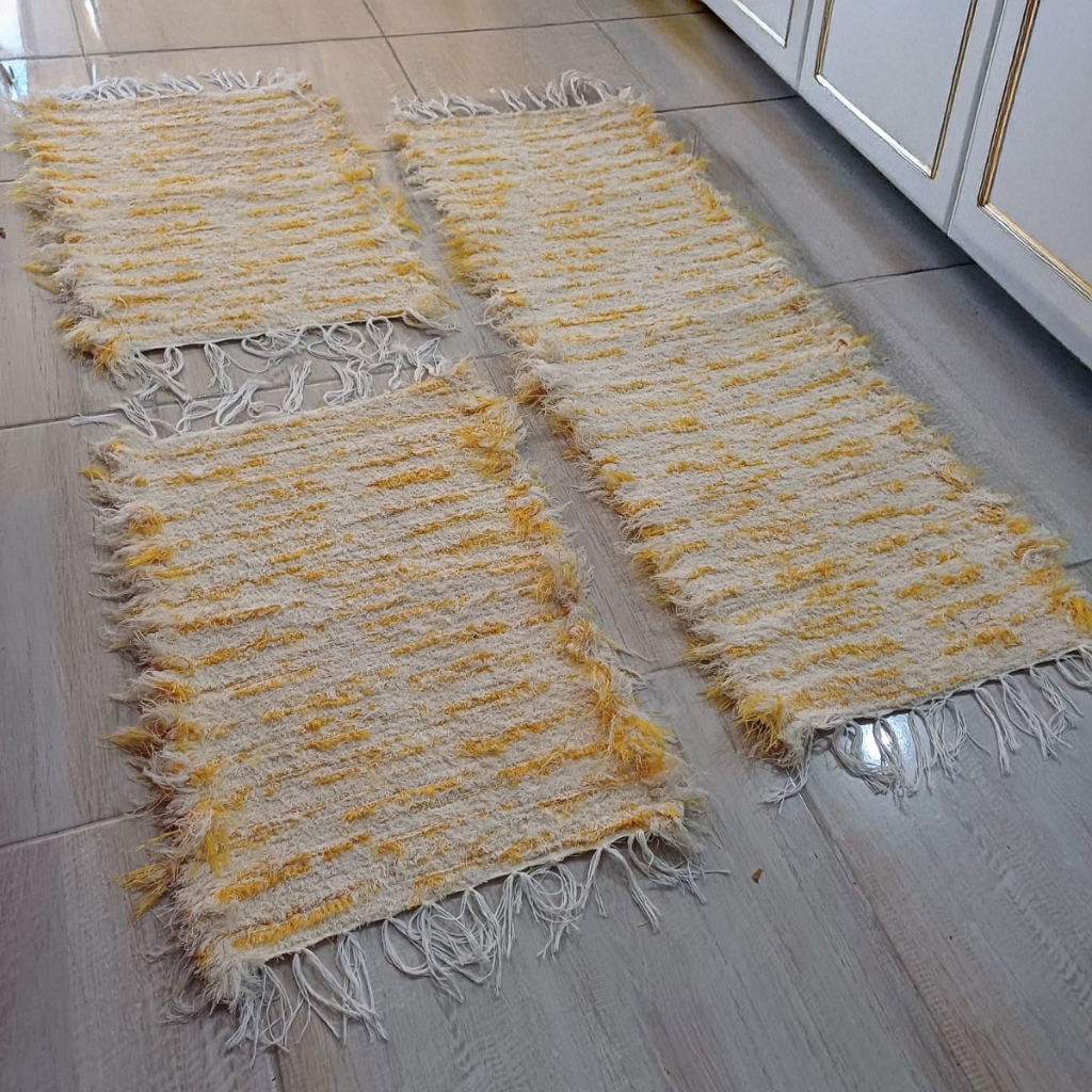 Jogo Tapete Cozinha Algodão Cru 3 Peças 2 Tapetes + 1 Passadeira