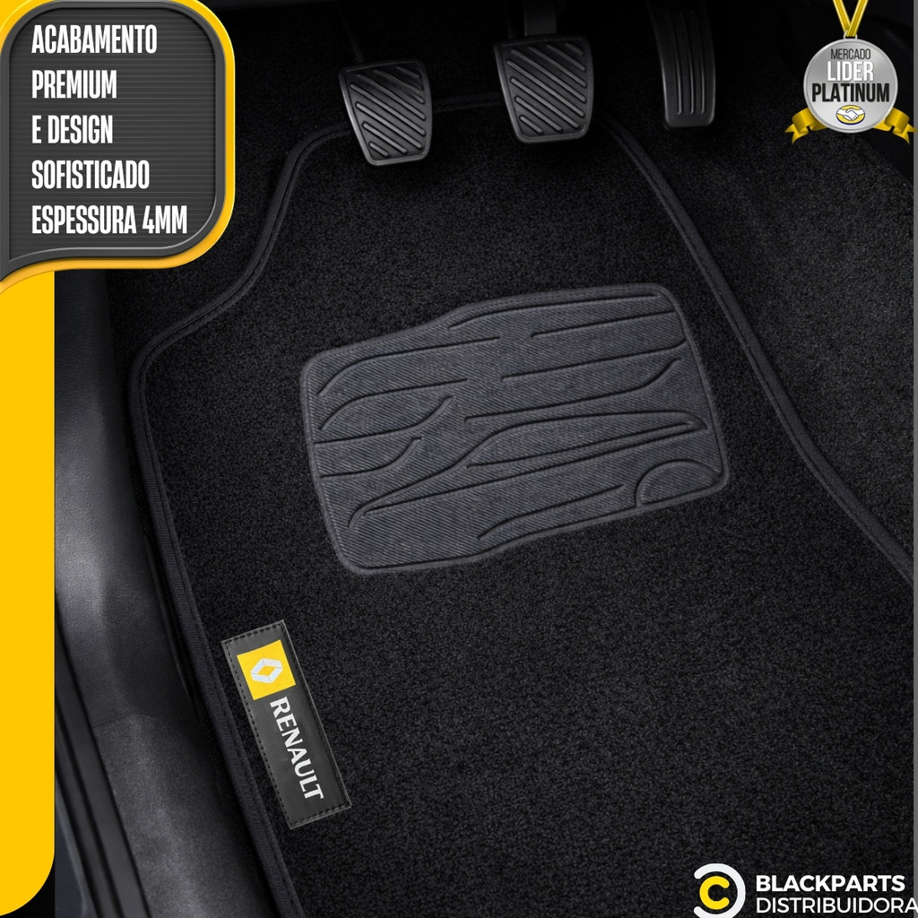 Jogo Tapete De Carpete Personalizado Renault Luxo Preto