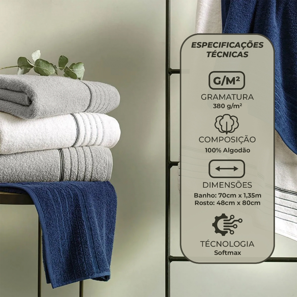 Jogo Toalha De Banho Karsten Macia E Grossa 100% Algodão Kit Banho e Rosto Barrado Bressan