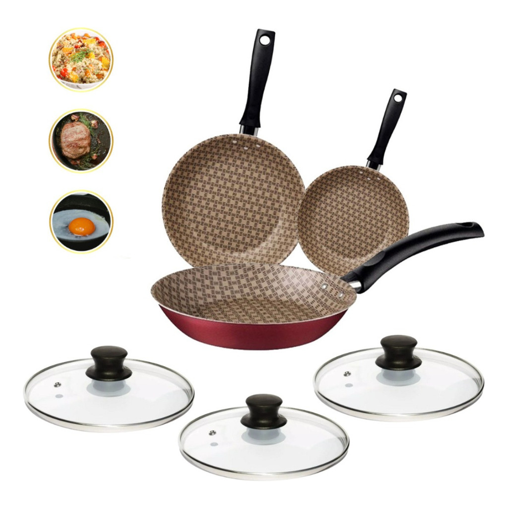 JOGO DE FRIGIDEIRAS ANTIADERENTE TRAMONTINA COM TAMPA KIT 3 FRIGIDEIRAS TRAMONTINA ANTIADERENTE COM TAMPA 16cm 20cm 24cm Para preparar suas refeições com praticidade, é essencial contar com itens de qualidade como a frigideira Tramontina Turim com tampa em alumínio com revestimento interno e externo em antiaderente Starflon Max vermelho 24, 20 e 16 centímetros de diâmetro. De manuseio seguro, devido ao cabo em baquelite antitérmico e rápida no cozimento dos alimentos, já que tem produção em alumínio, ela vai garantir muita funcionalidade e versatilidade na hora de preparar suas receitas diárias. Seu revestimento é em antiaderente Starflon Max, material que evita que os alimentos grudem em sua superfície, a torna mais fácil de limpar e durável, podendo ainda, ser levada à máquina de lavar louças! Produto com certificação compulsória certificada pelo SGS 0040, registro 001793/2018, modelo frigideira e classificação de antiaderência A, conforme portaria 419/2012. Corpo de alumínio com espessura de 1,2 mm que proporciona cozimento rápido e uniforme. Revestimento interno e externo de antiaderente Starflon Max que não gruda, é fácil de limpar, mais durável e não é prejudicial à saúde, pois é livre de PFOA. Cabo de baquelite antitérmico que oferece segurança durante o manuseio. Pode ir à máquina de lavar louças facilitando seu dia a dia.
