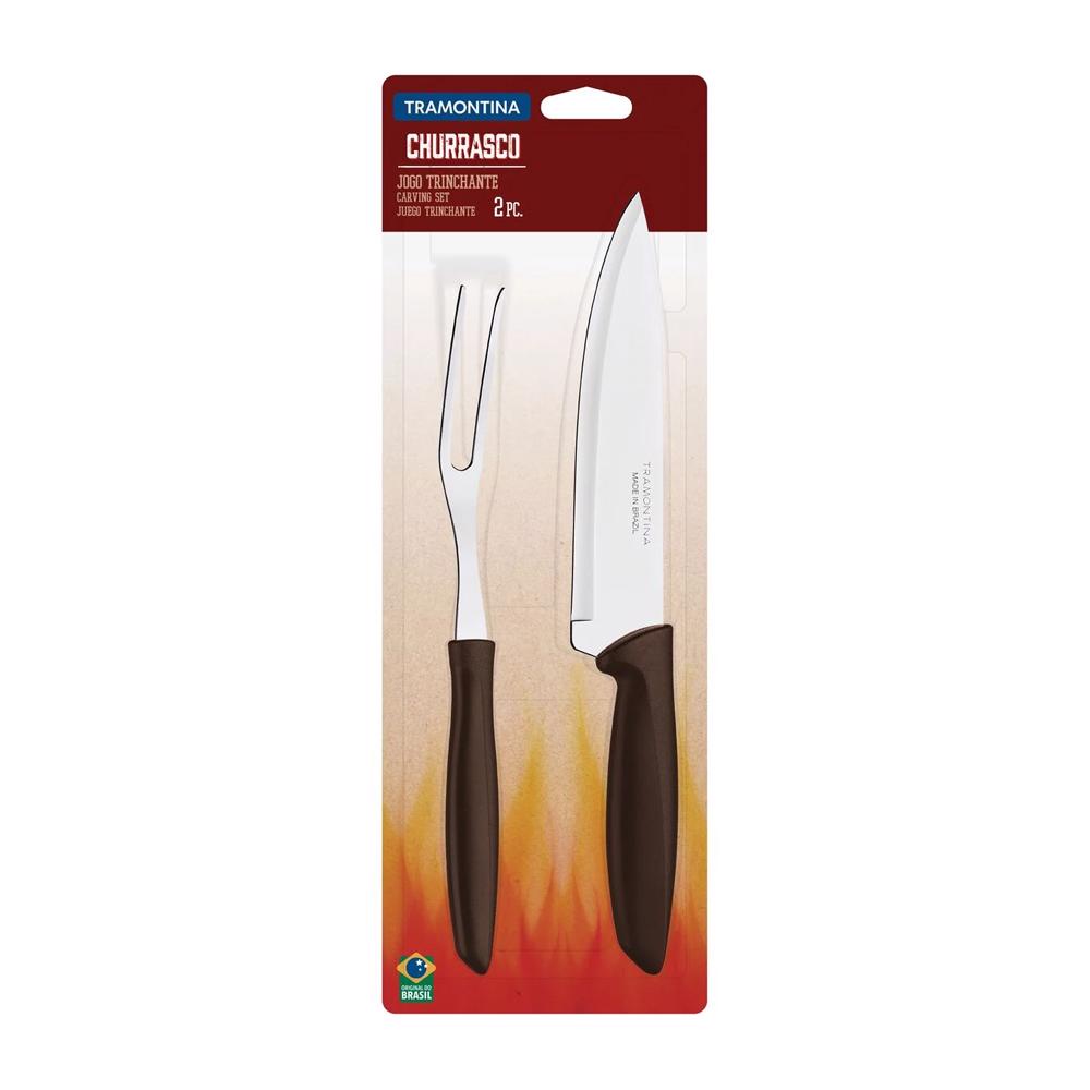 Jogo Trinchante Plenus em Inox e Cabo Polipropileno Marrom 2 Peças - Tramontina