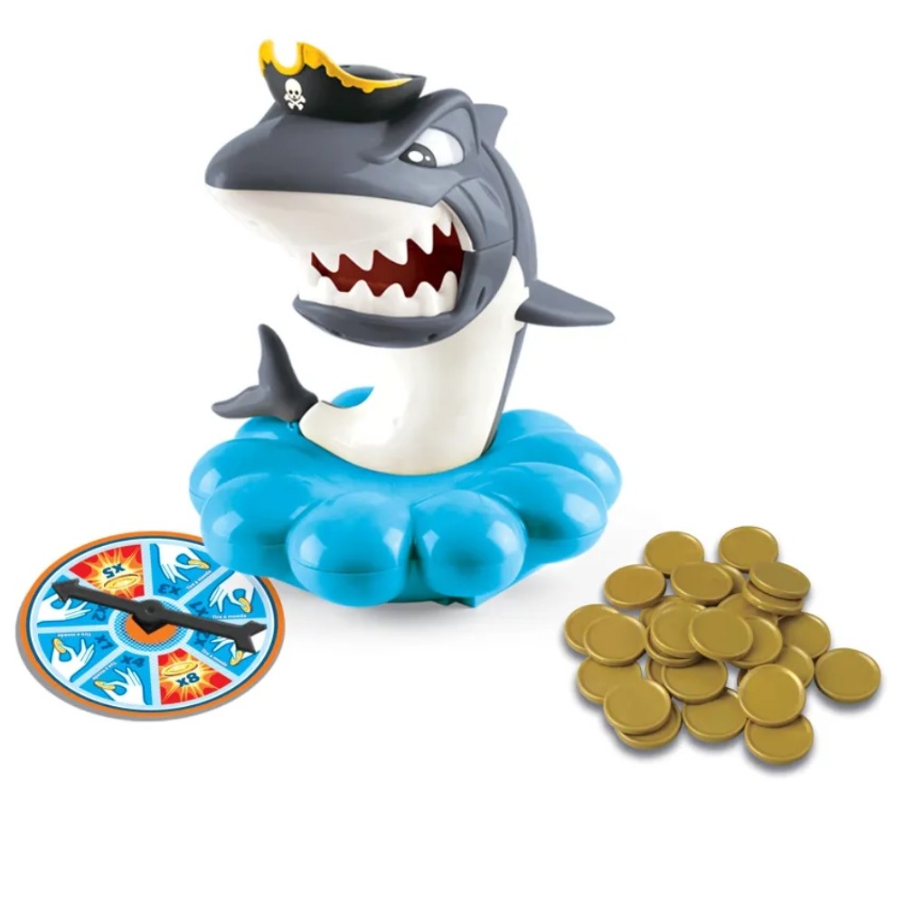 JOGO TUBARÃO PIRATA ESTRELA OURO TESOURO SHARKS PIRATE MAR ATAQUE MOEDAS ROLETA PULA BRINQUEDO MESA