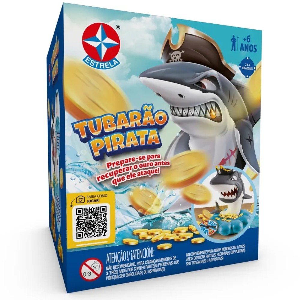 ***PRODUTO ESTRELA EM PORTUGUÊS ORIGINAL, OFICIAL, LACRADO E COM NOTA FISCAL*** JOGO TUBARÃO PIRATA ESTRELA OURO TESOURO SHARKS PIRATE MAR ATAQUE MOEDAS ROLETA PULA BRINQUEDO MESA Informações Técnicas: - Material: Plástico e Cartonado - Contém: 01 Tubarão Pirata, 36 Moedas e 1 Roleta. - Funciona com 3 pilhas AAA (NÃO INCLUSAS). - EAN: 7896027562064 - Produto certificado INMETRO REGISTRO: 002 849/2024 - Peso 580g - JOGO - 6+ ANOS - 2 a 4 jogadores - ESTRELA - Garantia: Contra defeitos de fabricação - Prazo de Validade: Indeterminado Obs: O produto e as cores podem variar do apresentado nas fotos da embalagem. Imagens meramente ilustrativas. ATENÇÃO! NÃO RECOMENDÁVEL PARA CRIANÇAS MENORES DE 3 (TRÊS) ANOS POR PODER GERAR PARTE(S) PEQUENA(S) QUE PODE(M) SER ENGOLIDA(S) OU ASPIRADA(S). ATENÇÃO! ESTA EMBALAGEM CONTÉM FECHOS/ GRAMPOS. RETIRAR ANTES DE ENTREGAR O BRINQUEDO À CRIANÇA. Dica aos adultos: leia as instruções e, ao mesmo tempo, vá jogando com a criança. JOGANDO PELA PRIMEIRA VEZ Para funcionamento do jogo, coloque 3 pilhas AAA na base azul, que representará o mar. Na sequência, encaixe o Tubarão Pirata nela. O encaixe das duas peças foi projetado com materiais de alta resistência, no intuito de garantir uma excelente fixação à base e baixo desgaste na utilização do produto, impedindo a separação das partes após o uso para evitar eventuais quebras das junções. Objetivo: Seja o jogador com o maior número de moedas ao final do jogo. Componentes: 1 Tubarão Pirata, 36 moedas douradas e 1 roleta. Como jogar: Para encaixar a cabeça do tubarão a seu corpo, vire levemente o pescoço e encaixe a peça. Ligue o Tubarão Pirata no botão ON/OFF localizado na parte debaixo da base. Espalhe as moedas de ouro no mar, em frente ao tubarão, e prepare-se para jogar! O jogador mais jovem deve ser o primeiro a rodar a roleta e pegar a quantidade de moedas indicada pelo ponteiro. Seja cuidadoso, pois o tubarão está de olho e pronto para atacar quem tenta pegar seu tesouro! Se o tubarão atacar na sua vez, você deve devolver metade de todas as suas moedas para o tubarão. Reencaixe a cabeça e siga o jogo com o jogador à direita, que deve girar novamente a roleta. Assim deve ocorrer sucessivamente a cada jogada, até que o tubarão ataque novamente. Vence o jogo o jogador com mais ouro quando a última moeda for retirada do Tubarão Pirata! É só encaixar o tubarão na base. E depois torcer levemente o pescoço do tubarão, encaixar a cabeça e começar a diversão! ADVERTÊNCIA! - As pilhas não devem ser recarregadas. - Os diferentes tipos de pilhas e baterias novas e usadas não devem ser misturados. - Só devem ser usadas pilhas e baterias do tipo recomendado ou um similar. - As pilhas e baterias devem ser colocadas respeitando a polaridade. - As pilhas e baterias descarregadas devem ser retiradas do brinquedo. - Os terminais de uma pilha ou bateria não podem ser colocadas em curto-circuito. - Não jogue as pilhas e baterias no fogo. - Quando for ficar muito tempo sem brincar, retire as pilhas e baterias do compartimento. Funciona com 3 pilhas AAA (NÃO INCLUSAS). A TROCA DAS PILHAS E BATERIAS DEVE SER FEITA POR UM ADULTO COM UMA CHAVE PHILLIPS (NÃO INCLUSA). --------------------------------------------------- SEJA MUITO BEM VINDO(A) A LOJA DE BRINQUEDOS DO CANAL 40 POR QUÊ COMPRAR NA LOJA DE BRINQUEDOS DO CANAL 40? *Enviamos seu pedido sempre no mesmo dia ou no máximo no próximo dia útil dependendo do horário da sua compra! *Produtos lacrados, originais e oficiais da mais alta qualidade; *Experiência única de compra (incluindo a experiência olfativa - você sentirá nosso cheiro); *Todos os nossos produtos estão à pronta entrega em nosso estoque físico aqui no Brasil; *Seu pedido será enviado com segurança e agilidade; IMPORTANTE: Tenha tranquilidade de comprar com quem está disposto a te oferecer o melhor atendimento, caso tenha algum problema após a compra, conte com nossa equipe de pós venda para solucioná-lo! A LOJA DE BRINQUEDOS DO CANAL 40 tem a missão de garantir a satisfação total do seu cliente, tanto nos produtos quanto no atendimento. Assim estabelecemos uma relação única de confiança! Não encontrou o que procurava? Clique na foto da nossa logo para entrar em nossa loja e ver todos os nossos produtos OU nos mande uma mensagem diretamente aqui pelo chat. SERÁ UM PRAZER ATENDÊ-LO(A)! --------------------------------------------------- MUITO PRAZER, ME CHAMO FELIPE CAMARGO, SOU DONO, CEO E CRIADOR DE CONTEÚDO DO CANAL 40. DESDE JÁ, DEIXO AQUI O MEU MUITO OBRIGADO!!! CANAL 40 - LOJA DE BRINQUEDOS LTDA DEIXE SUA CRIANÇA INTERIOR FELIZ E APROVEITE!