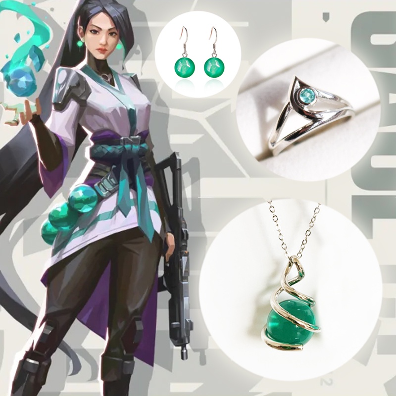 Jogo Valorant Brincos Sábio Anel Colar Unisexo Pingente Moda Halloween Cosplay Acessórios Presentes