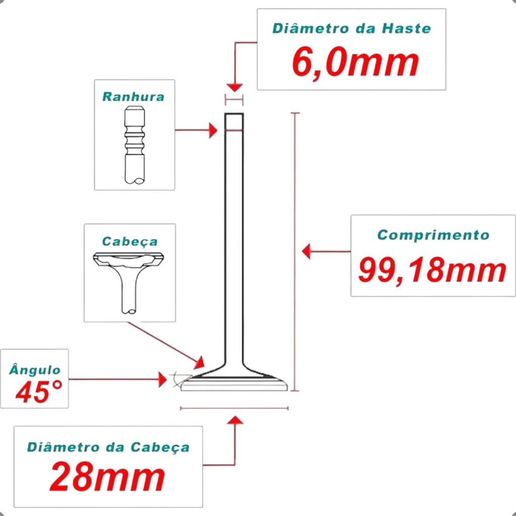 KIT VÁLVULAS DE ADMISSAO E ESCAPE TAKAO PARA MOTORES VW 1.4 / 1.6 8V EA111 MARCA: TAKAO MEDIDAS DAS VALVULAS: - ADMISSAO 34.50 x 6.00 x 99.18mm - ESCAPE 28.00 x 6.00 x 99.18mm VALOR REFERENTE A 8 VALVULAS ENVIAMOS COM NOTA FISCAL E GARANTIA DE 3 MESES ** ANTES DE EFETUAR A COMPRA, VERIFIQUE SE O PRODUTO É COMPATIVEL COM O SEU VEÍCULO/MOTOR ** ------------------------------------------------------ APLICAÇÃO COMPLETA VW CROSSFOX 1.6 8V EA111 2005 - 2018 FOX 1.6 8V EA111 2004 A 2016 GOL 1.6 8V EA111 2004 - 2017 GOLF 1.6 8V EA111 2003 - 2008 KOMBI 1.4 8V EA111 2006 - 2014 PARATI 1.6 8V EA111 2004 - 2012 POLO 1.6 8V EA111 2002 - 2016 SAVEIRO 1.6 8V EA111 2008 - 2022 SPACECROSS 1.6 8V VHT EA111 2012 - 2016 SPACEFOX 1.6 8V EA111 2006 - 2020 VOYAGE 1.6 8V EA111 2009 - 2018 ------------------------------------------------------