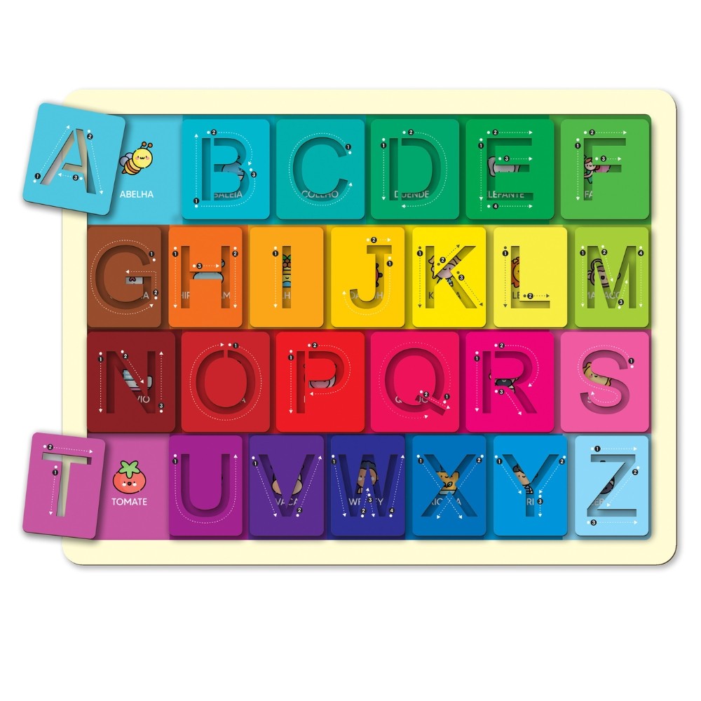 JOGO VAMOS ESCREVER? ALFABETO VAZADO MADEIRA BABEBI LETRA LÓGICO MADEIRA EDUCATIVO QUEBRA CABEÇA ABC