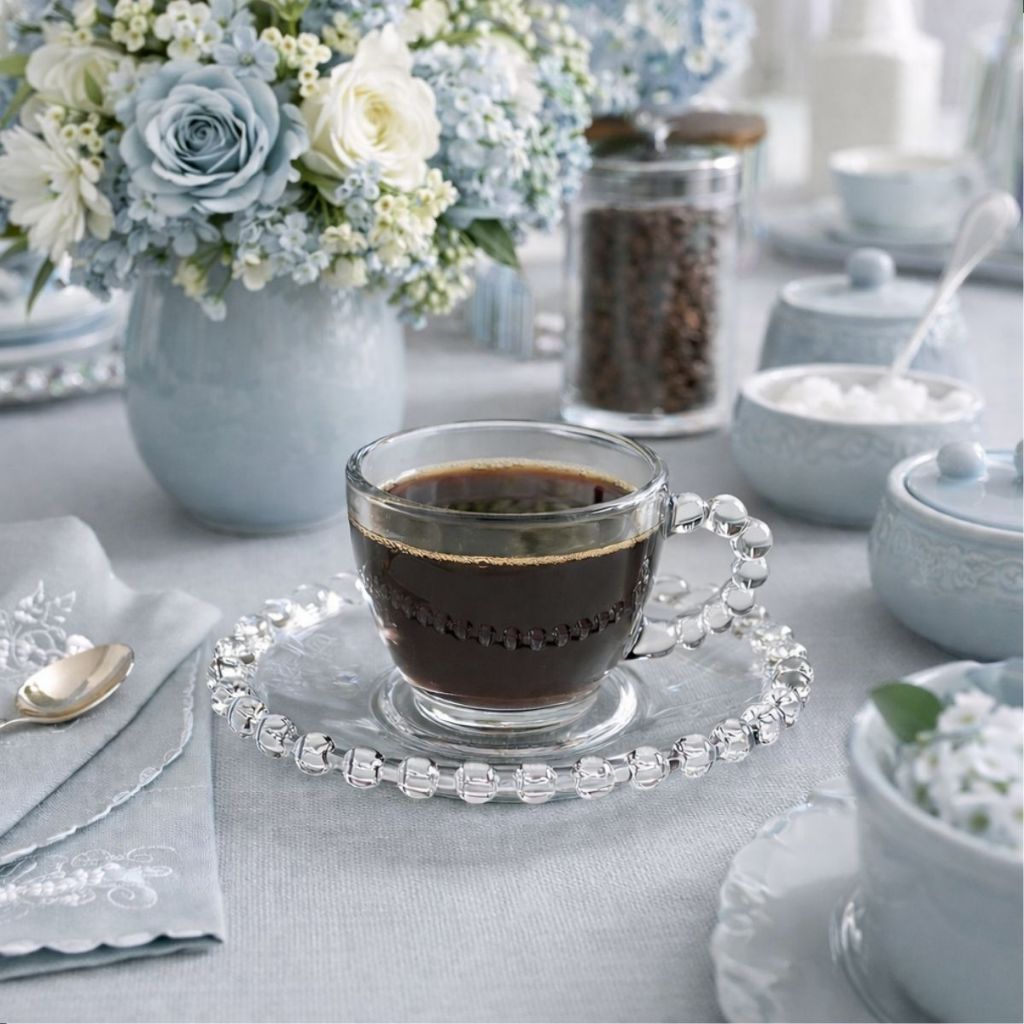 Transforme seu momento do café em uma experiência sofisticada Tomar café em xícaras comuns pode tirar todo o charme desse momento especial. Com o Jogo de Xícara de Vidro 220ml com Pires, você transforma cada pausa para o café em um momento elegante e cheio de estilo. O design com bolinhas estilo pérola no pires e na alça cria um visual sofisticado que valoriza qualquer mesa. Perfeito para receber visitas, servir café ou simplesmente tornar seu dia mais especial. ✨ Por que escolher esta Xícara de Vidro 220ml com Pires? A Xícara de Vidro 220ml com Pires possui acabamento refinado e design diferenciado inspirado em peças elegantes utilizadas em mesas sofisticadas. Fabricada em vidro sodo-cálcico de qualidade, ela proporciona resistência e beleza ao mesmo tempo. O conjunto é ideal para quem deseja servir café com elegância e impressionar convidados. Benefícios que fazem a diferença • Design sofisticado com detalhes estilo pérola • Conjunto elegante para servir café ou chá • Vidro transparente que valoriza a apresentação • Ideal para receber visitas ou ocasiões especiais • Capacidade perfeita para café ou cappuccino • Conjunto completo com xícara e pires • Excelente opção para presente Especificações Técnicas Produto: Xícara de Vidro 220ml com Pires Conteúdo da embalagem ✔ 6 Xícaras de vidro ✔ 6 Pires de vidro Total: 12 peças Capacidade • 220 ml por xícara Dimensões aproximadas da xícara • Altura: 7 cm • Diâmetro da boca: 8,5 cm • Espessura: 4 mm Dimensões aproximadas do pires • Altura: 2 cm • Diâmetro: 14,5 cm • Espessura: 5 mm Material • Vidro sodo-cálcico País de origem • Egito Validade • Indeterminada ⭐ Um toque de sofisticação na sua mesa A Xícara de Vidro 220ml com Pires é muito procurada por quem deseja uma mesa mais elegante e charmosa. Seu design diferenciado transforma o momento do café em uma experiência ainda mais especial. Compra segura ✔ Produto novo ✔ Pronta entrega ✔ Embalagem segura ✔ Envio rápido Diferenciais do nosso produto • Design exclusivo com bolinhas estilo pérola • Conjunto elegante para mesa posta • Vidro resistente e sofisticado • Ideal para servir café ou chá • Excelente custo-benefício Cuidados com o produto • Lavar com detergente neutro • Utilizar esponja macia • Não usar palha de aço ou produtos abrasivos • Evitar quedas ou impactos • Evitar contato com objetos pontiagudos Garanta já o seu! Deixe seu momento do café ainda mais elegante com o Jogo de Xícara de Vidro 220ml com Pires. 👉 Clique em Comprar Agora e receba rapidamente!