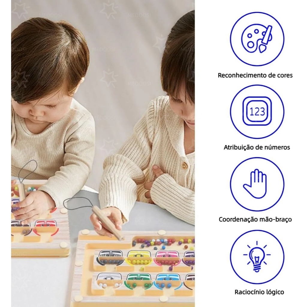 Jogos Labirinto Magnético Montessori de Madeira - Classificação de Cores para Criança / Infantil Brinquedo Educativo