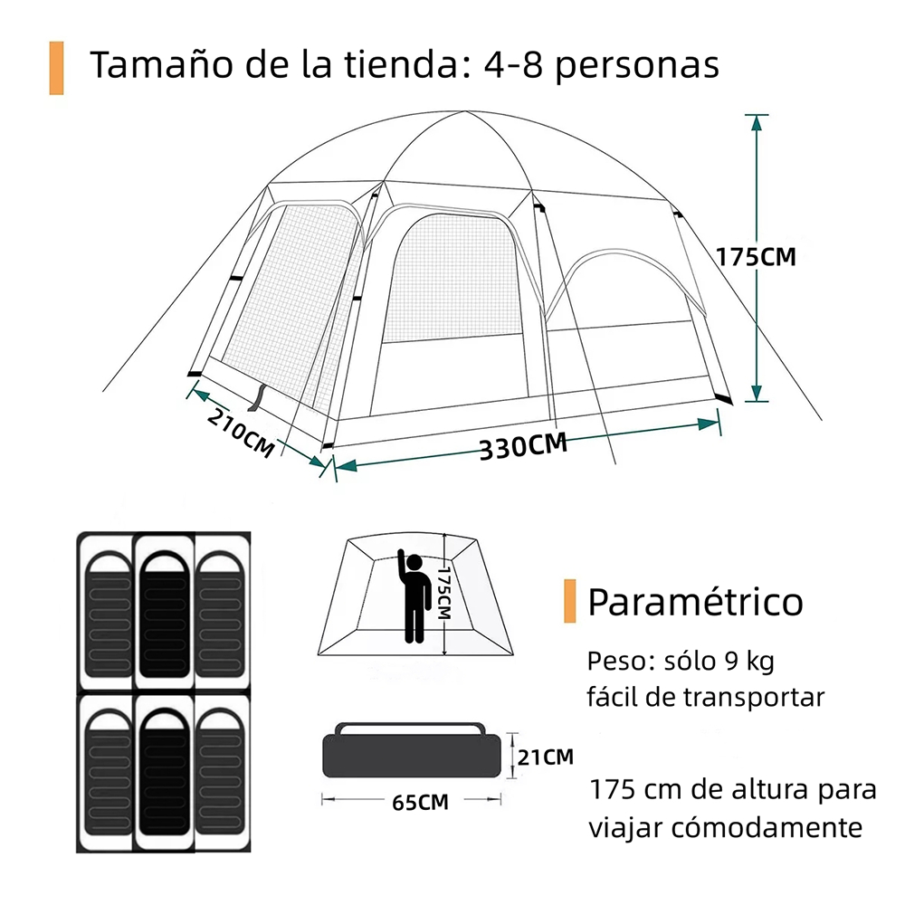 JOYFOX 4-8 Pessoas Barraca Camping Acampamento 330*210*175cm Impermeavel 2000mm