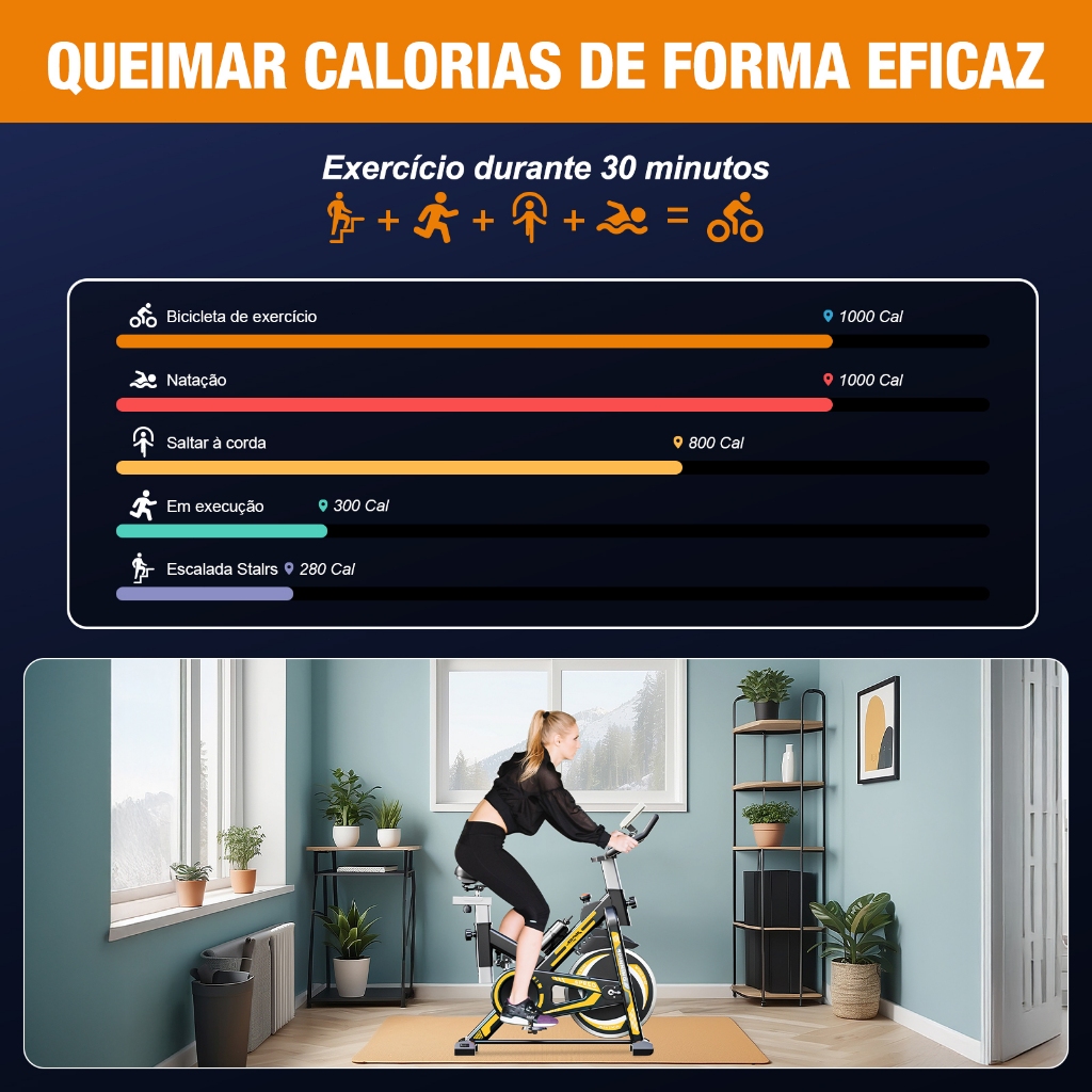 JOYFOX Bicicleta Spinning bicicleta ergometrica Para Exercícios Profissional Sport Suporta até 120kg
